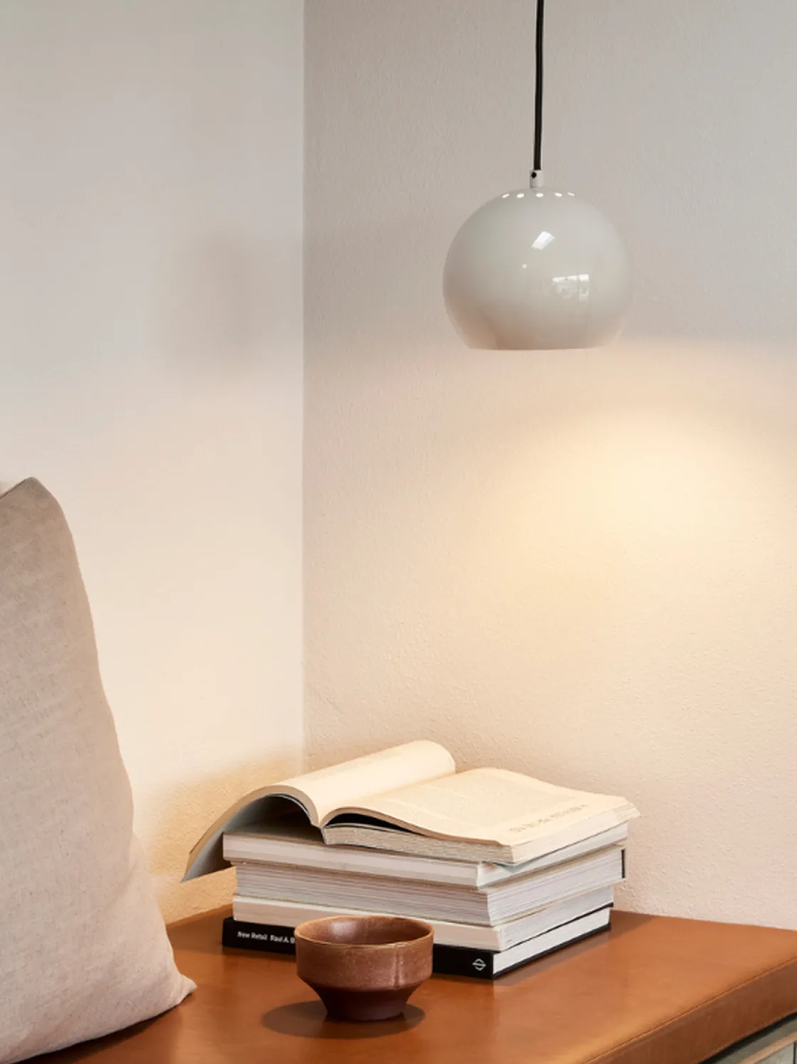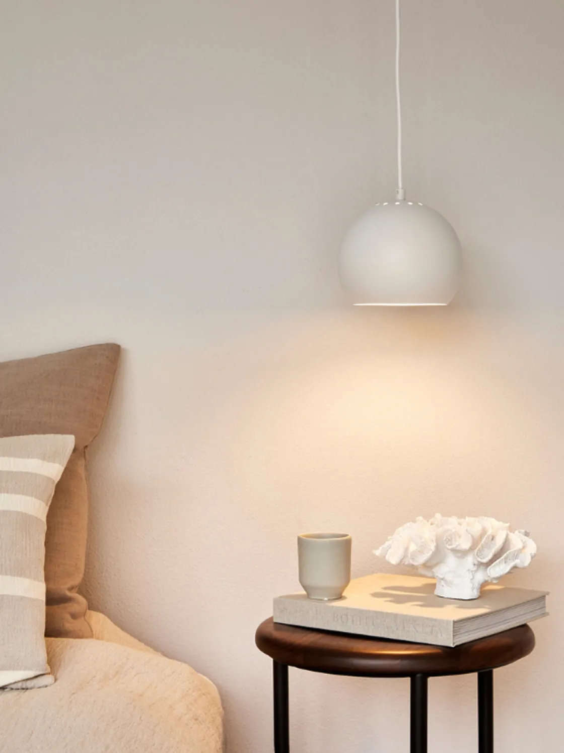 ø18-utgaven av Ball-anhenget har en flott størrelse for å kunne plasseres mer enn én i samme setting. Miks eller match de mange forskjellige fargene for å skape et lekent uttrykk i interiørdekorasjonen din.