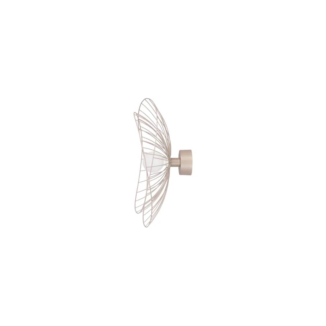 Myk og grafisk kombinert tak- / vegglampe Ray i matt beigelakkert metall som, som et strøk, er korrugerte i ytterkanten. Lampen leveres med en takfeste og en veggfeste, samt en 200 cm lang gjennomsiktig kabel for de som ønsker å montere den på veggen