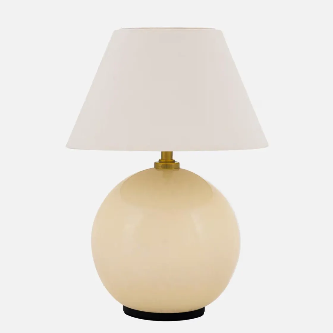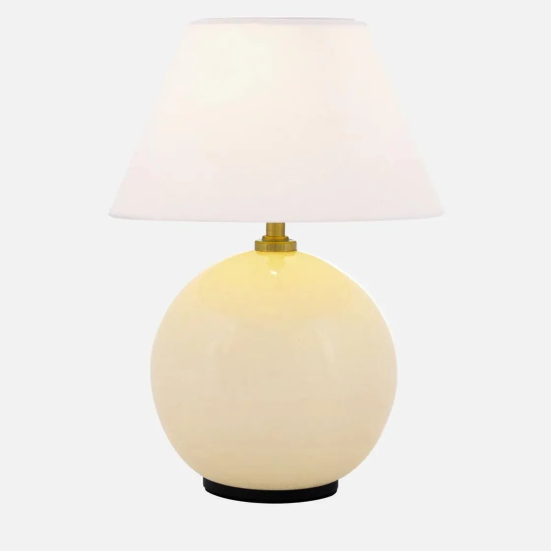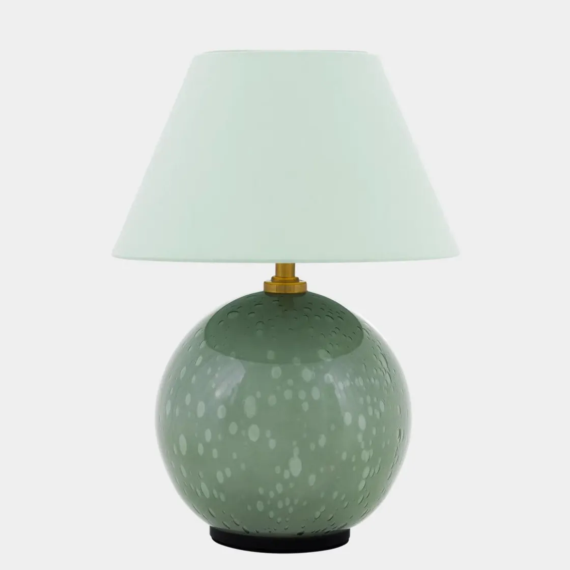 Lampen har moderne detaljer, som en base i farget glass med uregelmessige blåste bobler, samt en tilhørende bomullsskjerm med en dekket topp som matcher basen. Lampen har en bryter på toppen av skjermen og kan dimmes i tre ulike trinn.
