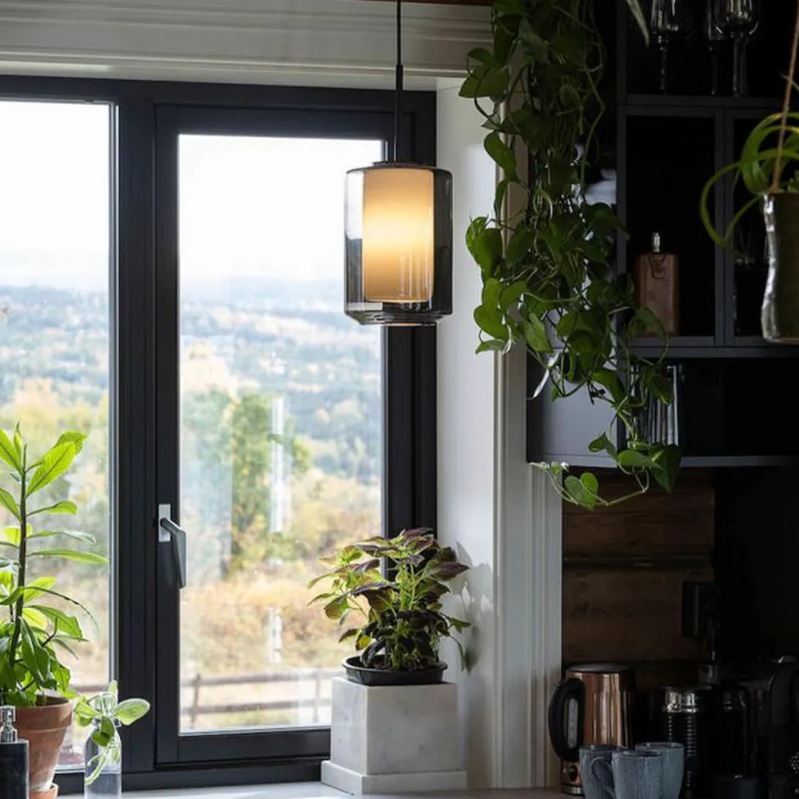 Lampe 4245 er designet av Arnulf Bjørshol i 1965. Den har en røykgrå ytterkuppel og hvit opal innerkuppel og oppheng i stål.