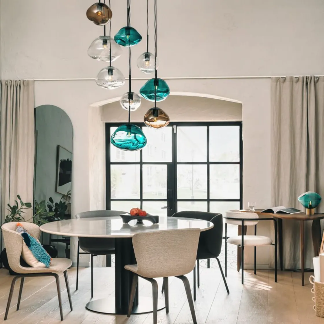 Skap energi og friskhet med blågrønne glasspendellampe