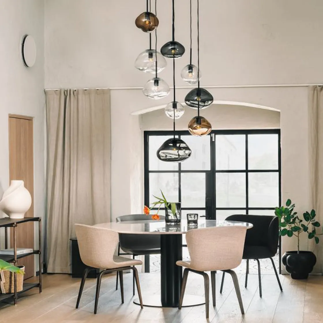Som klare regndråper på et vindu, og spillet i istapper om våren. Alle lampene er munnblåst og den organiske formen skapes når glassmassen er varm, dette gjør at hver eneste kuppel blir unik.