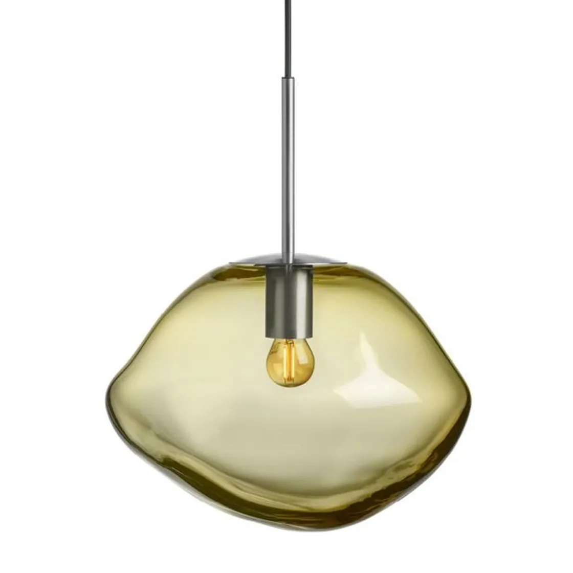 Få en følelse av ro og balanse med oliven glasspendellampe.