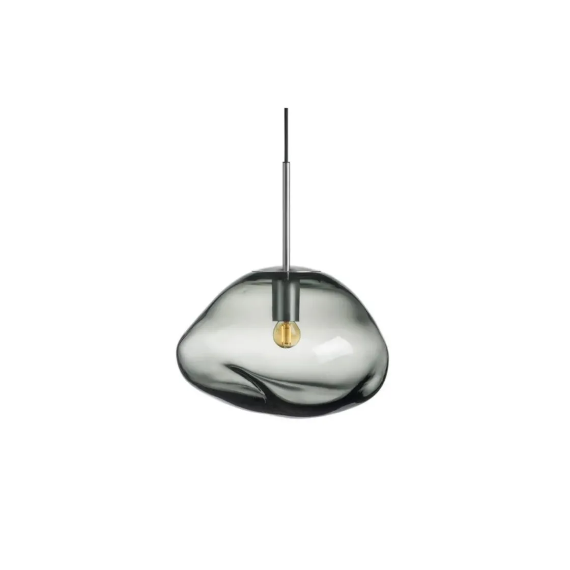 Nyt en sofistikert og elegant atmosfære med røkgrå glasspendellampe.