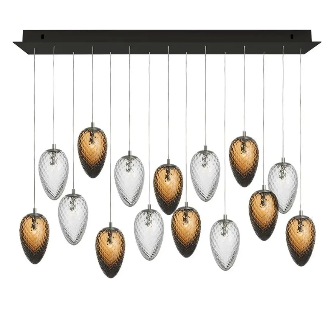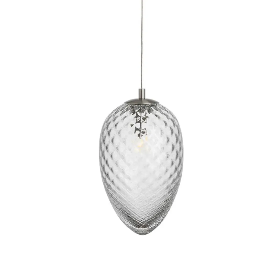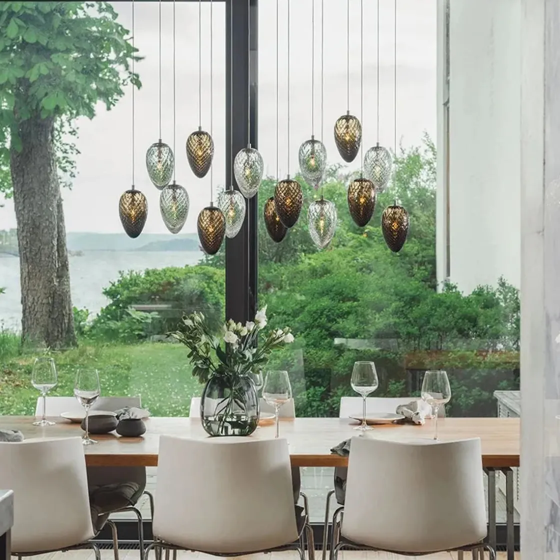 Inneholder 15 munnblåste kongler i delikat harmoni, i 8 kongler på 17cm i kakao og 7 kongler på 17cm i klart glass.