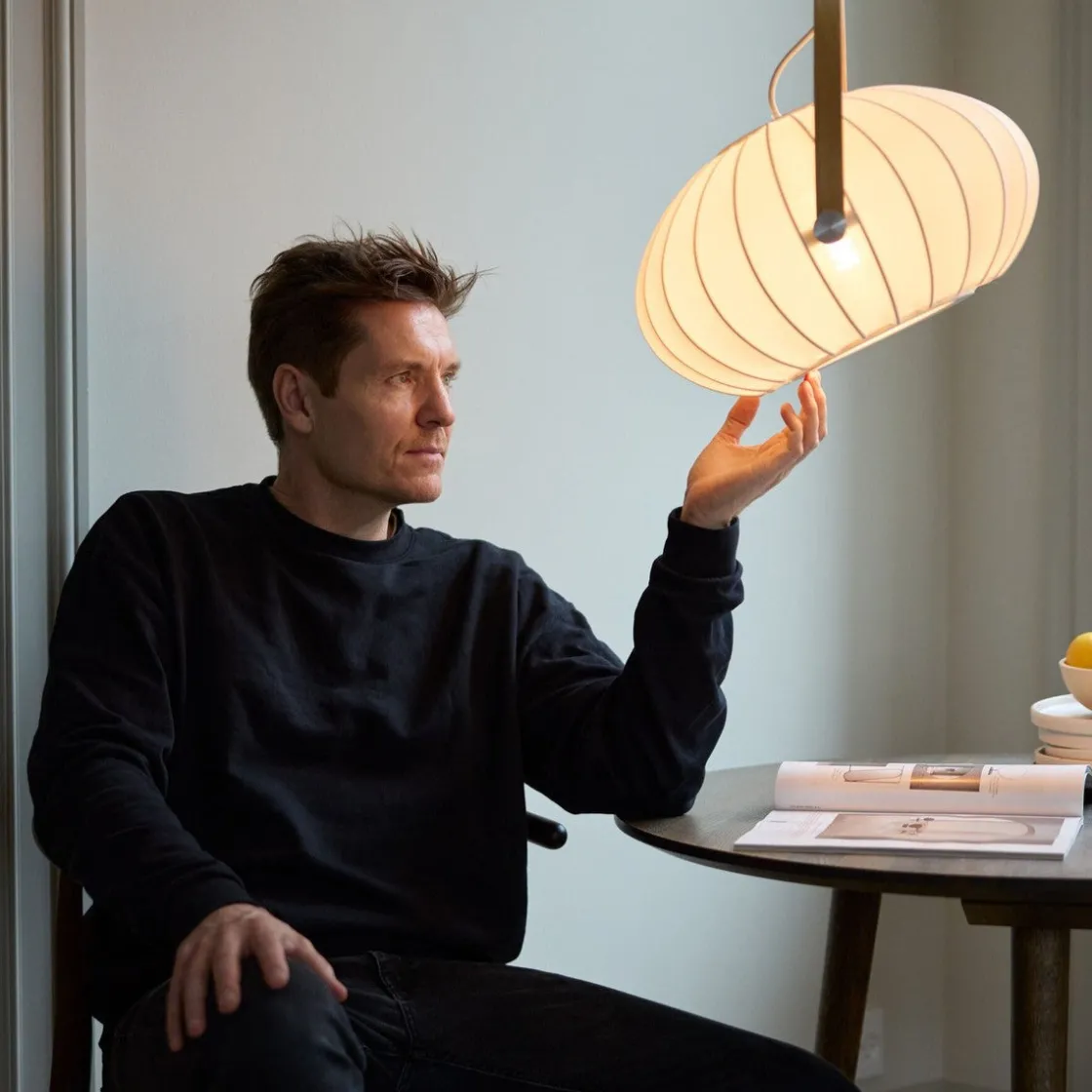 DC er en familie av lamper med et enkelt og skandinavisk inspirert design. Takket være de runde formene og kombinasjonen av metall og tre, ble denne serien umiddelbart en av våre klassikere. Den finerte eikebuen har også en svært viktig funksjon for å rotere lampeskjermen og styre lyset fritt.