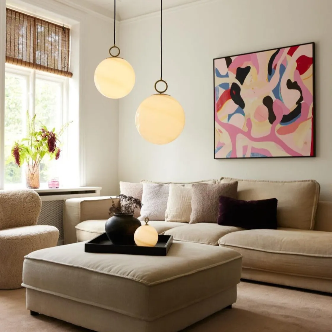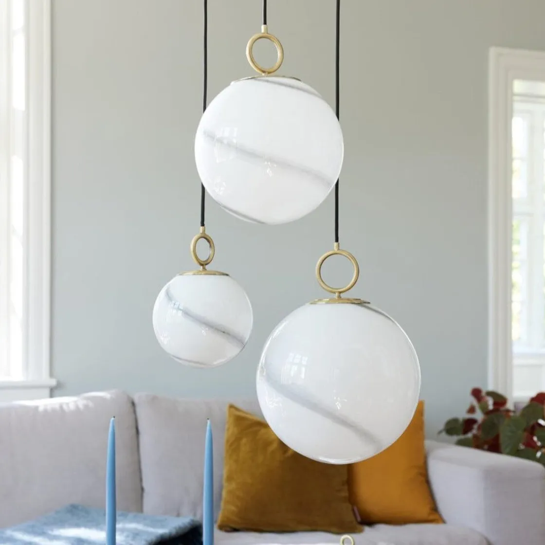 Estetisk og materialforskning resulterer i denne lampefamilien, som har et opalt glass med marmordekor kombinert med messingfinish.