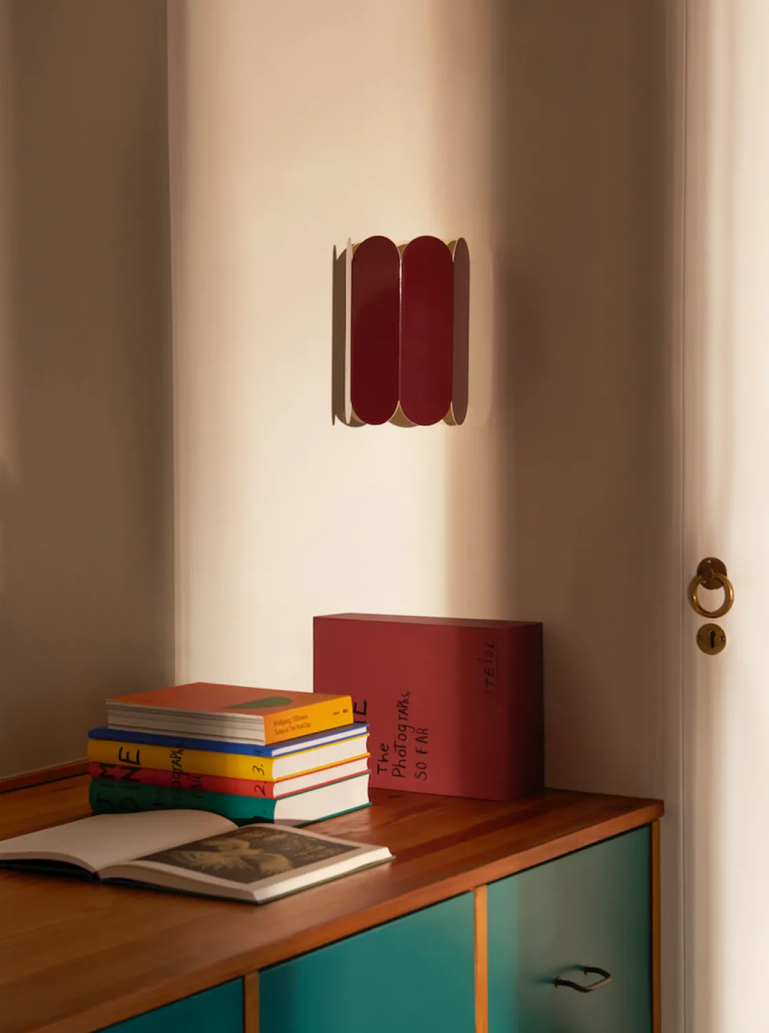 Arcs vegglamper er en del av en serie lamper med buet design skapt for HAY av de belgiske duoen Muller Van Severen. Lampen er formet fra en kontinuerlig kjede med buede buer som skaper en elegant, skulptert silhuett. Det gir lampen et mykt, omgivende lys opp og ned som leker med former og skygger. Lampen er enkel å montere og er tilgjelgelig i to veggvarianter, med og uten ledning/bryter. Lampen er laget i solid stål og er tilgjengelig i flere forskjellige farger eller med speiloverflate. Lampen er allsidig og fin å bruke i korridorer og store rom, samt som nattlampe eller i små hjørner.
