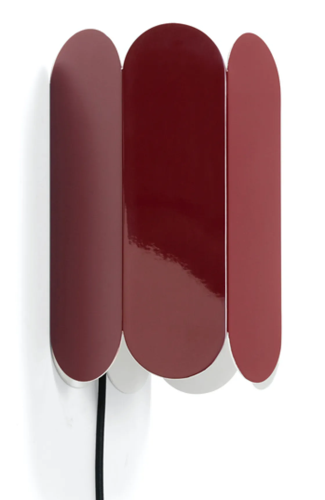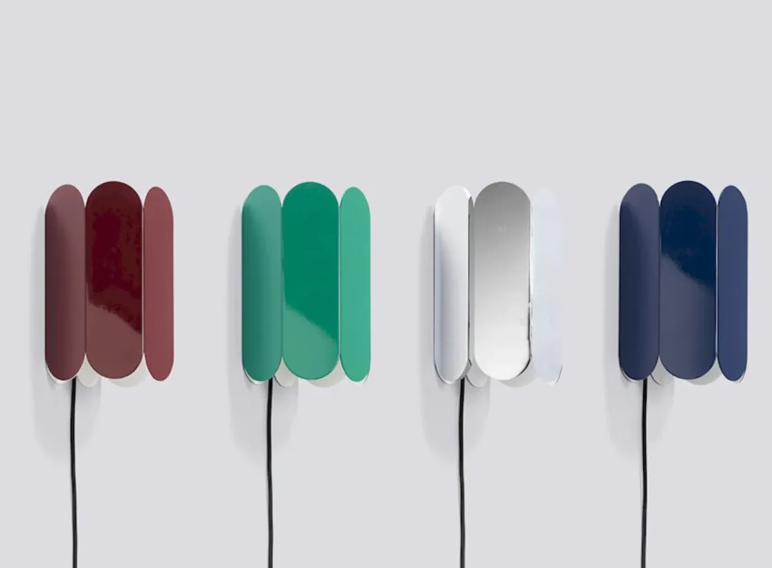 Arcs vegglamper er en del av en serie lamper med buet design skapt for HAY av de belgiske duoen Muller Van Severen. Lampen er formet fra en kontinuerlig kjede med buede buer som skaper en elegant, skulptert silhuett. Det gir lampen et mykt, omgivende lys opp og ned som leker med former og skygger. Lampen er enkel å montere og er tilgjelgelig i to veggvarianter, med og uten ledning/bryter. Lampen er laget i solid stål og er tilgjengelig i flere forskjellige farger eller med speiloverflate. Lampen er allsidig og fin å bruke i korridorer og store rom, samt som nattlampe eller i små hjørner.
