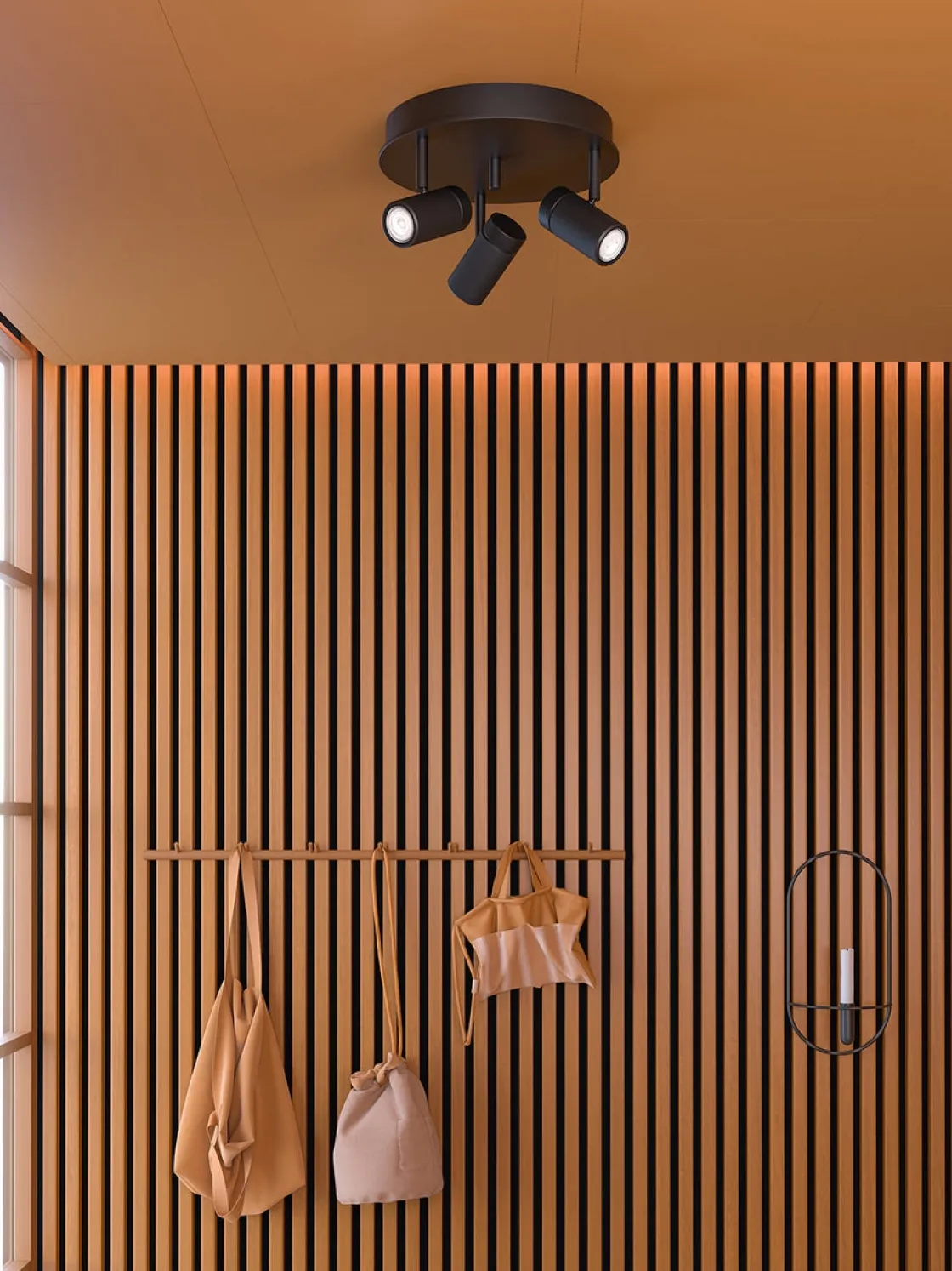 Holder-familien utmerker seg ved å kombinere metall og ekte tre. Teksturen og utformingen av materialene gjør lampen levende i sitt uttrykk.