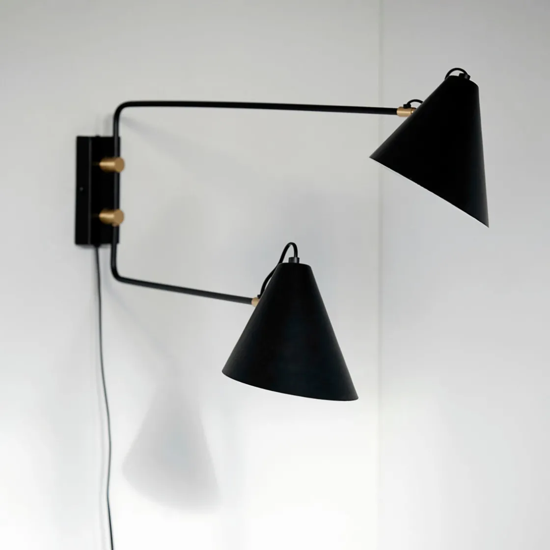 Lamper legger til karakter og stil til enhver innredning. Med den dekorative vegglampen, Club, fra House Doctor, får du et atmosfærisk lys for rommet ditt og en fin dekorasjon for veggene dine. Lampen har et industrielt og skulpturelt utseende, noe som gjør det til en fantastisk designerklæring i ethvert hjem. Kombinasjonen av svart jern og gylden messing gir designen en varm vri. Lampen har flere funksjoner. Lampehodet kan vippes opp og ned og fra side til side. Og armen kan flyttes fra side til side. Disse funksjonene gir deg muligheten til å justere lyset slik du vil.