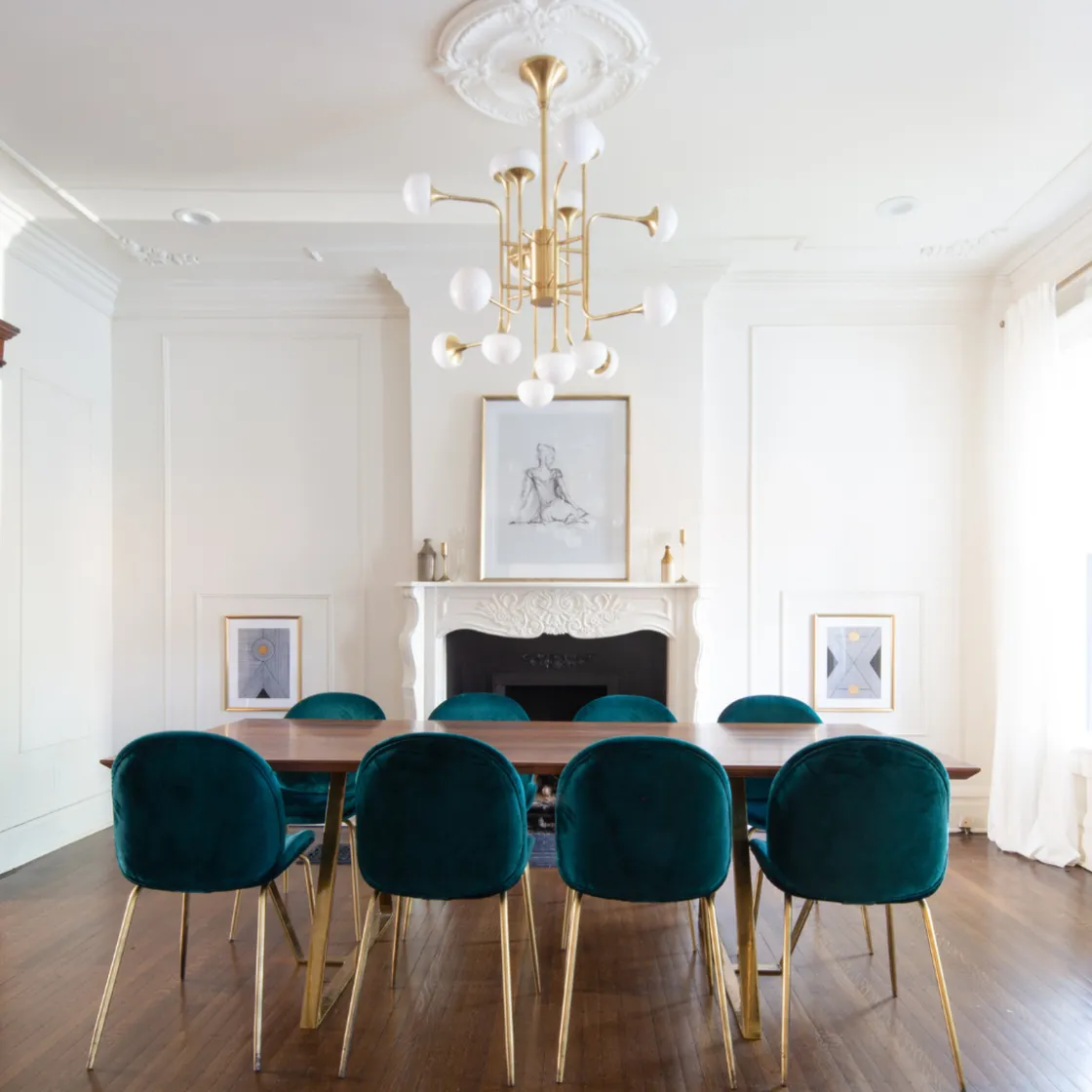 Fleming lysekrone fra Hudson Valley er en lampe med wow-faktor! Heng den over spisebordet, over salongbordet, på kjøkkenet, på soverommet eller midt i rommet om høyden tillater det. Lampen har en fin messingfinish, 8 kupler i opalhvitt glass og sørger for godt lys til rommet.