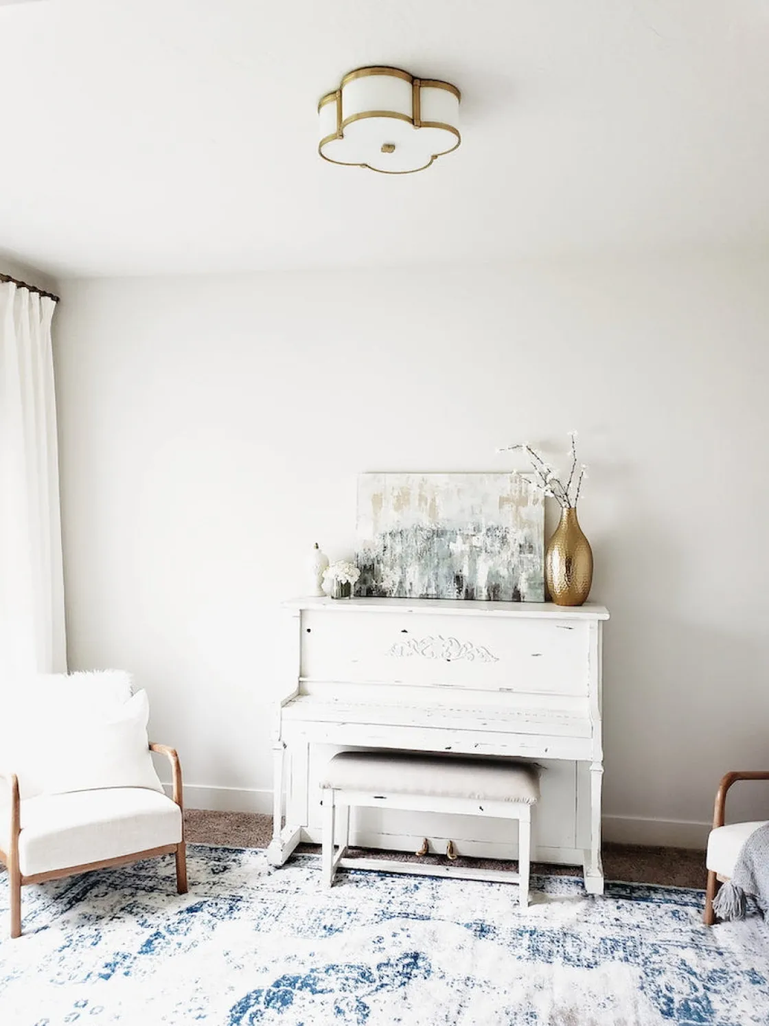 - Farge: matt messing og opalhvitt glass