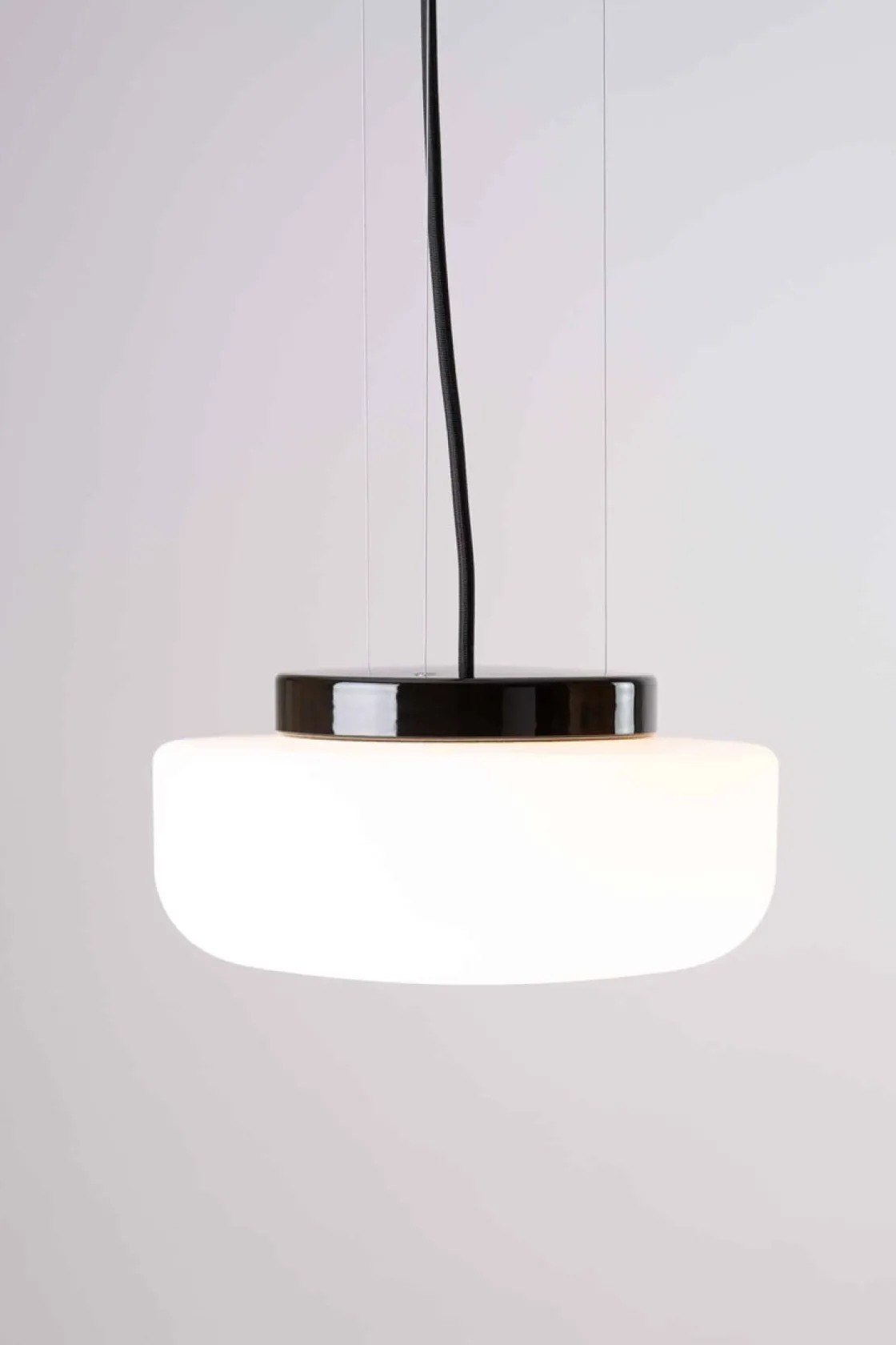 Solenne er designet av Kauppi & Kauppi og består av totalt syv armaturer, som alle har sjenerøse kupler i matt opalglass og porselensfot i sort eller hvit glasur. Fire av armaturene følger det tradisjonelle sortiment for tak, vegg og fasade med IP44-klassifisering, egnet for montering både innendørs og utendørs.