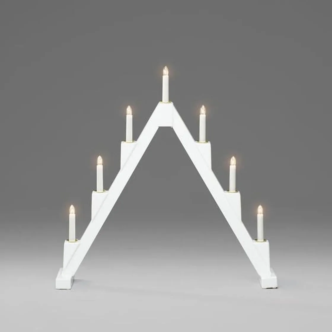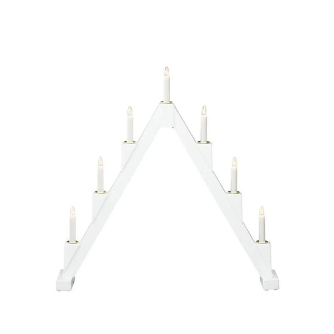 Klassisk adventslysestake i lakkert tre med elegante messingfargede metalllyshylser – en tidløs favoritt som sprer atmosfære i vintermørket. Med 7 varme hvite lys og et smart sammenleggbart design er den både vakker i vinduet og enkel å oppbevare til neste jul.