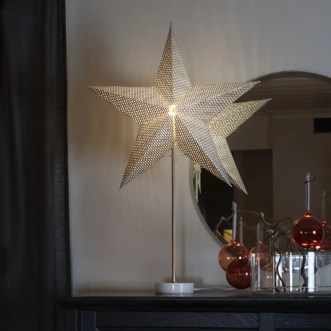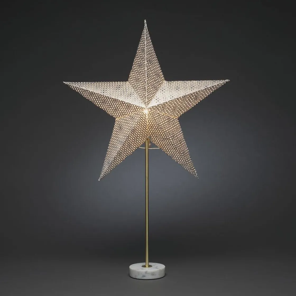 Papirstjerne med marmorfot gir et moderne og eksklusivt uttrykk.