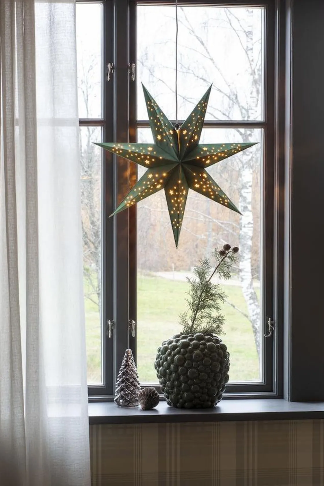 Konstsmide Adventsstjerner<Pappstjerne 60 cm – Grønn fløyel/Gull innside