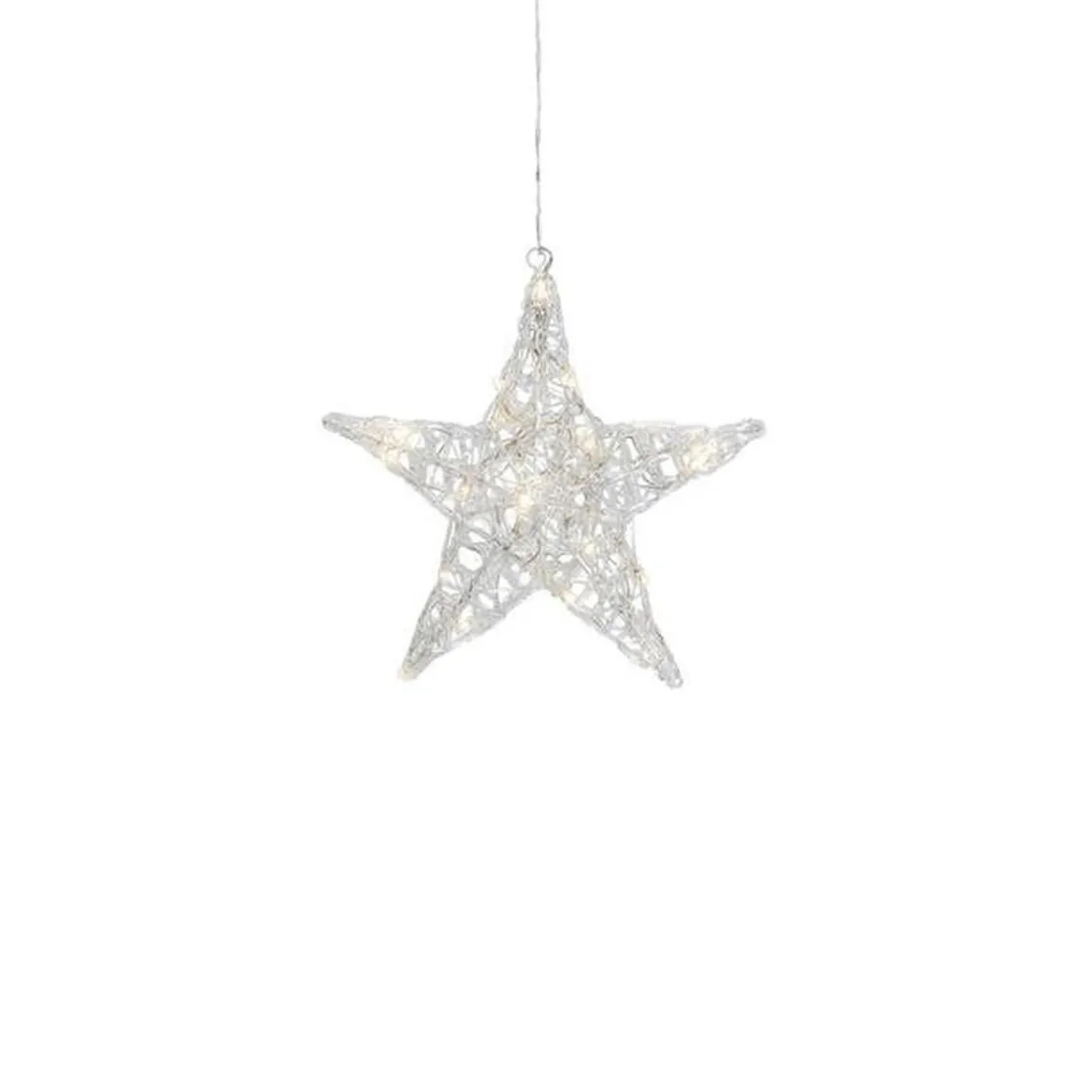 Stjerne i akrylplast med 24 varmhvite LED-lys. Leveres med transformator med støpsel til stikkontakt.