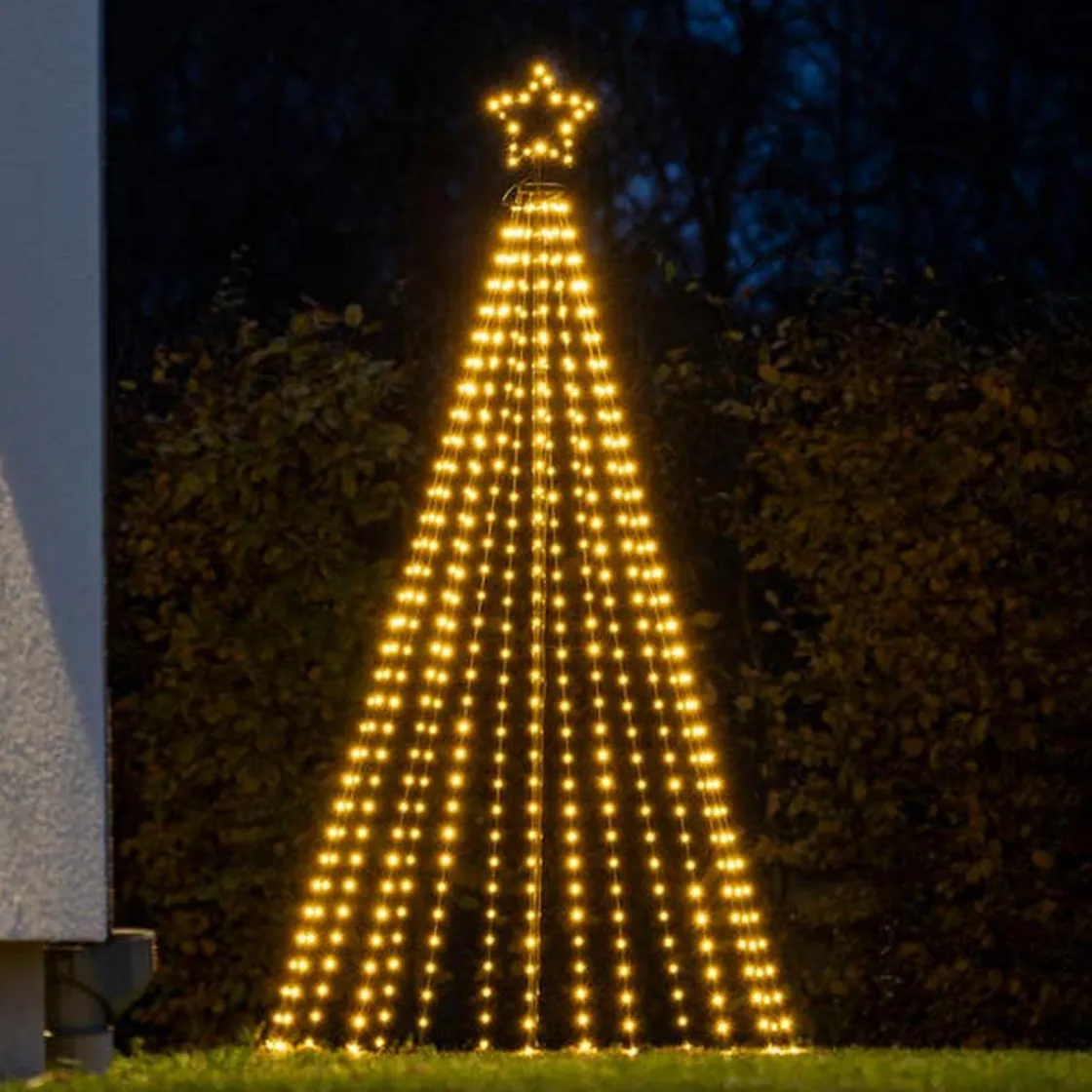 Et imponerende juletre i metall med varmhvite LED-lys – perfekt for å skape en magisk atmosfære i hagen eller på terrassen. Med sin elegante glød lyser det opp vintermørket og blir en iøynefallende dekorasjon. Enkel å montere og pålitelig for en glitrende og stemningsfull jul!