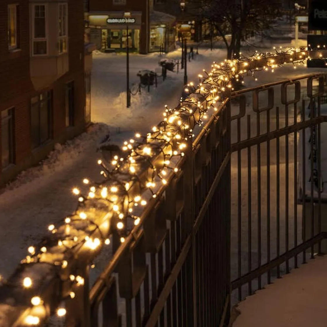Koselig utendørsliv tar et helt nytt nivå – våre klyngelyslenker med varmhvite LED-lys gir atmosfæriske lyspunkter, designet for å tåle både regn og rusk. Skaper en magisk atmosfære på terrassen, balkongen eller i juletreet. Enkel å installere, energieffektiv og klar til å lyse opp hele året.