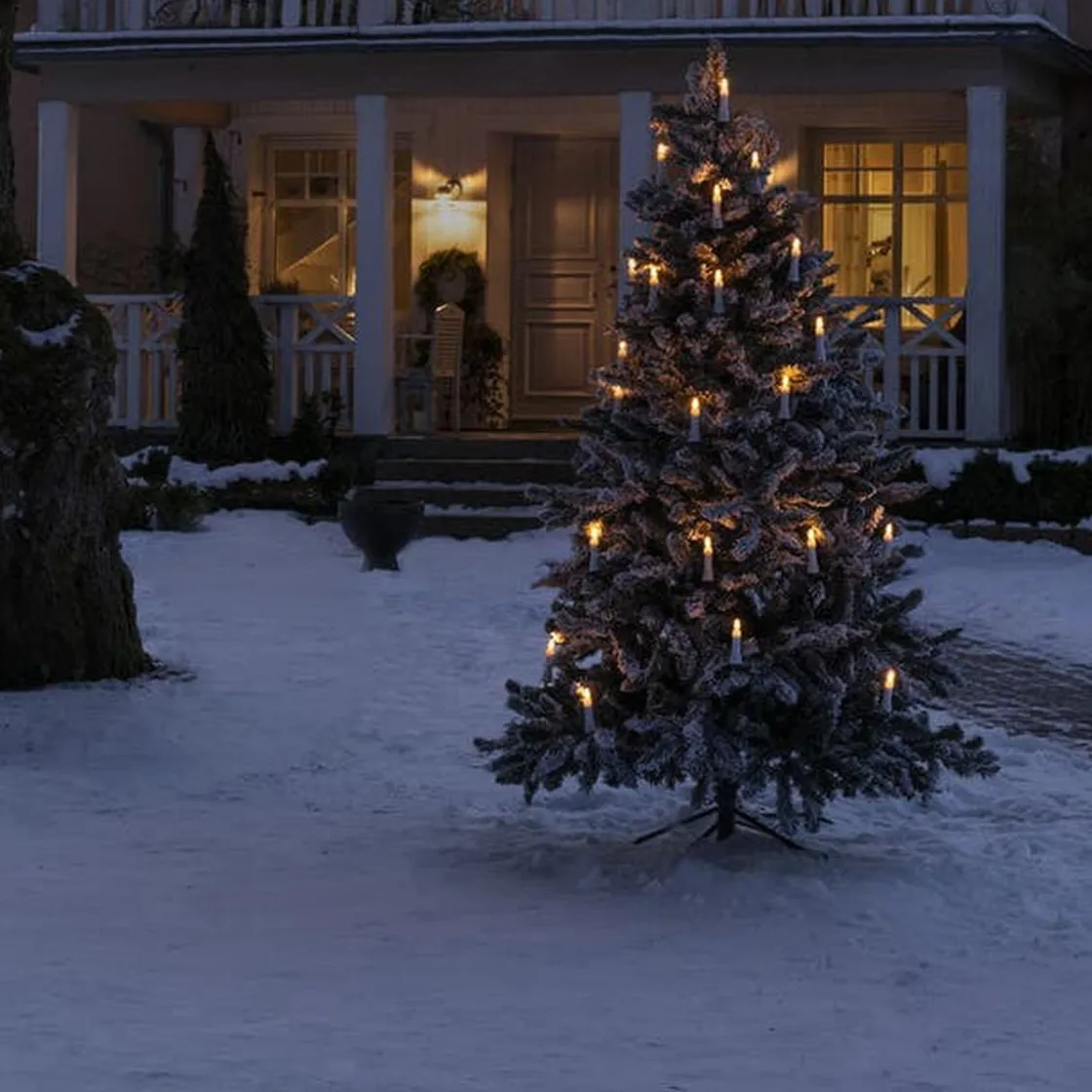 Juletrebelysning på 35,2 meter for utendørs bruk med 45 varmhvite DC LED-lys. Sløyfen er koblet parallelt. Drevet av en 24V transformator. Tilkoblingskabelen er 5 meter lang.