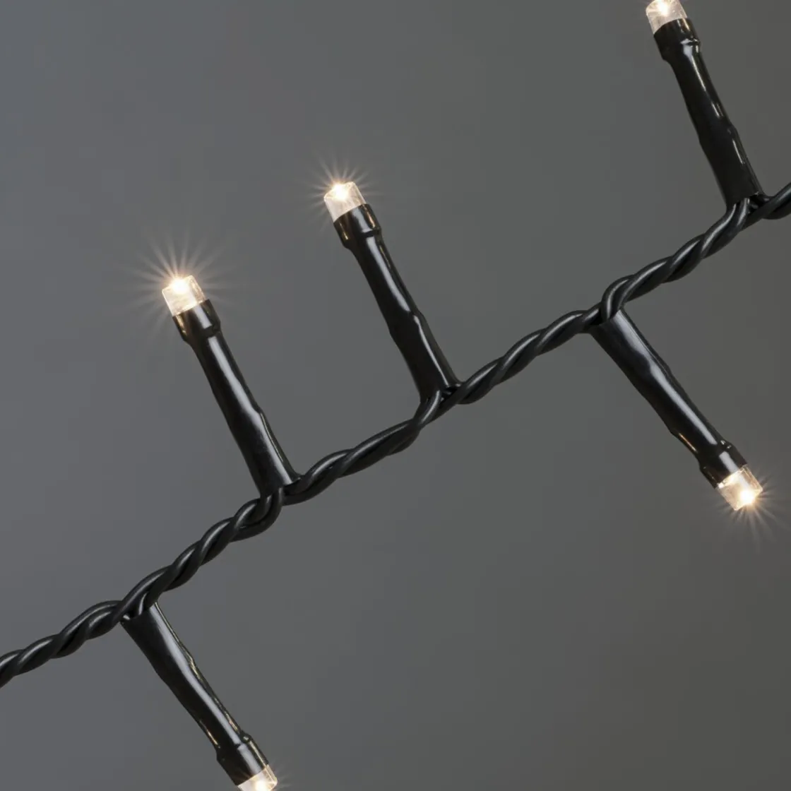Slynge Cluster med 1000 varmhvite lys på svart ledning.