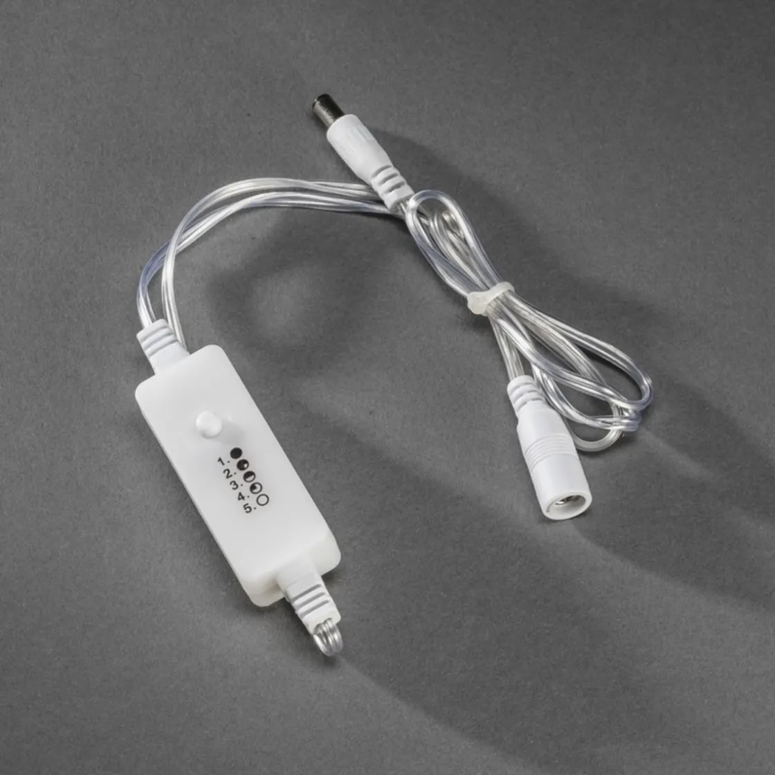 Dimmeren er enkel å montere. Den ene enden festes i siste del av lysslyngen på juletreet og den andre enden festes i trafoen som følger med juletreet.