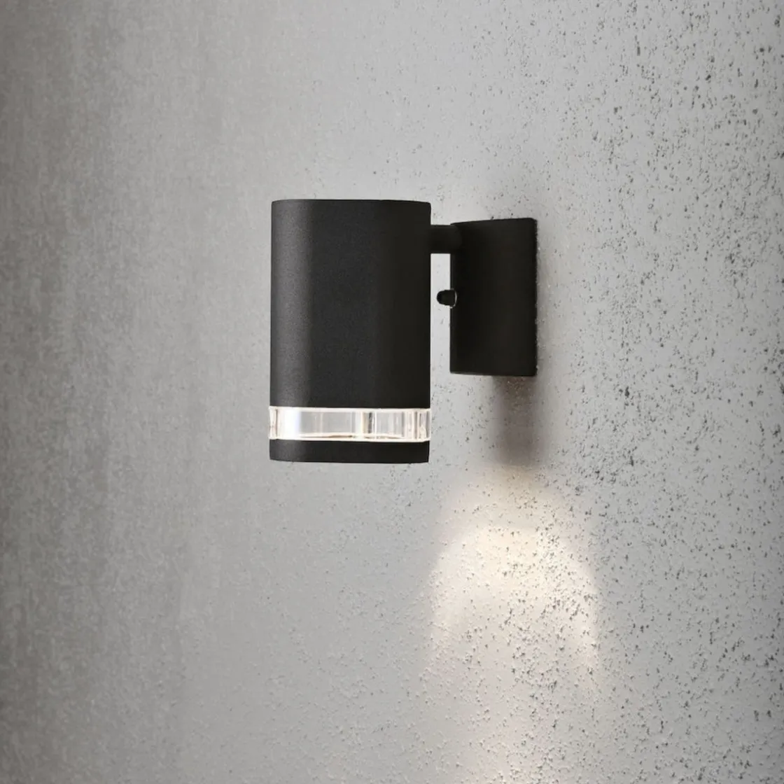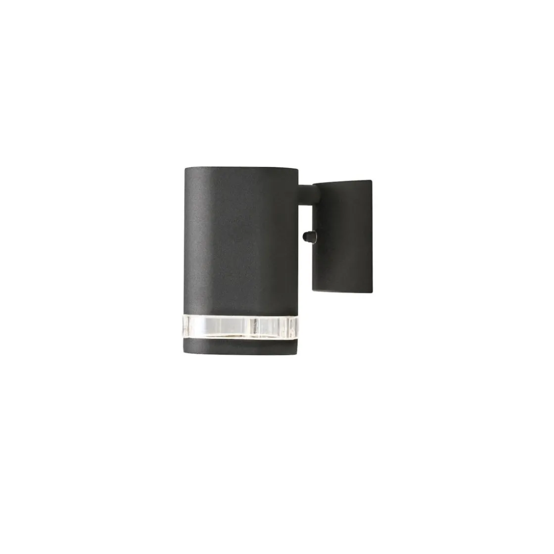 Moderne og dekorativ utelampe som lyser kraftig både opp og ned på veggen. Lampen er en del av en lampe-serie som finnes i flere varianter.