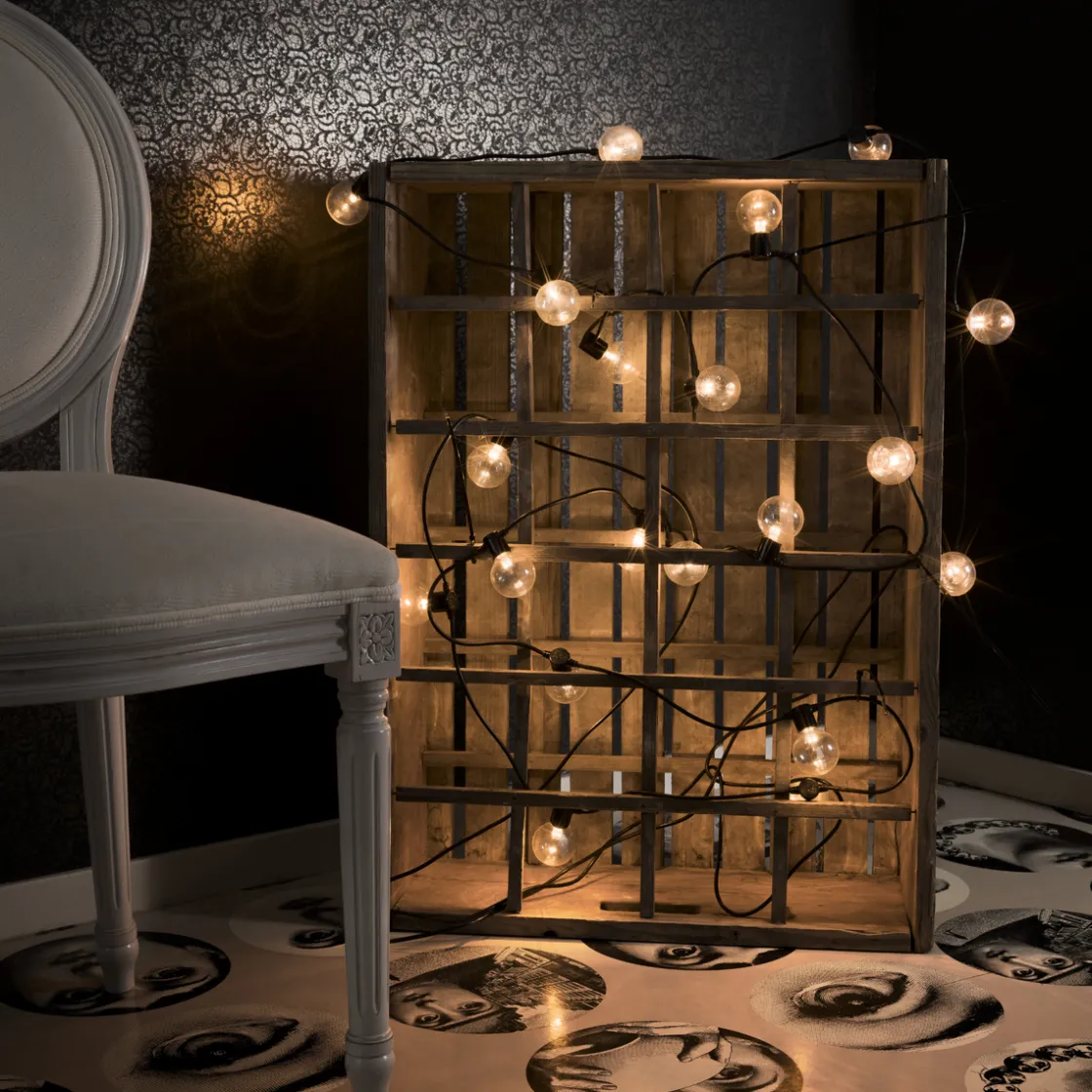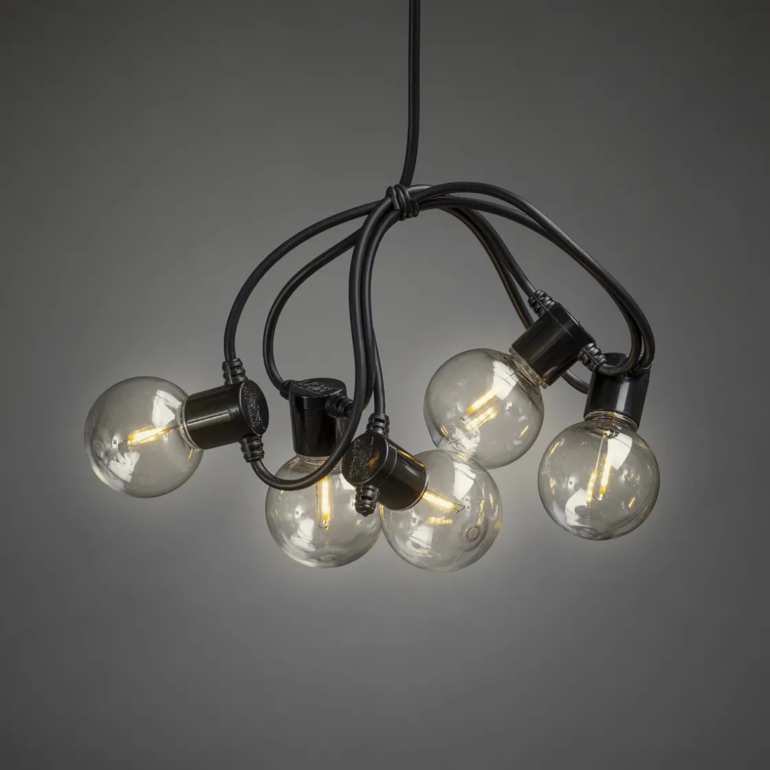 Lysslynge med 20 amber LED-lamper. Faststøpte lyspærer og kuppel i plast som gjør dem uknuselig. Det amberfargede lyset er med på å skape ekstra koselig stemning. Amber er en enda varmere lysfarge enn varmhvit, uten at den blir gul.