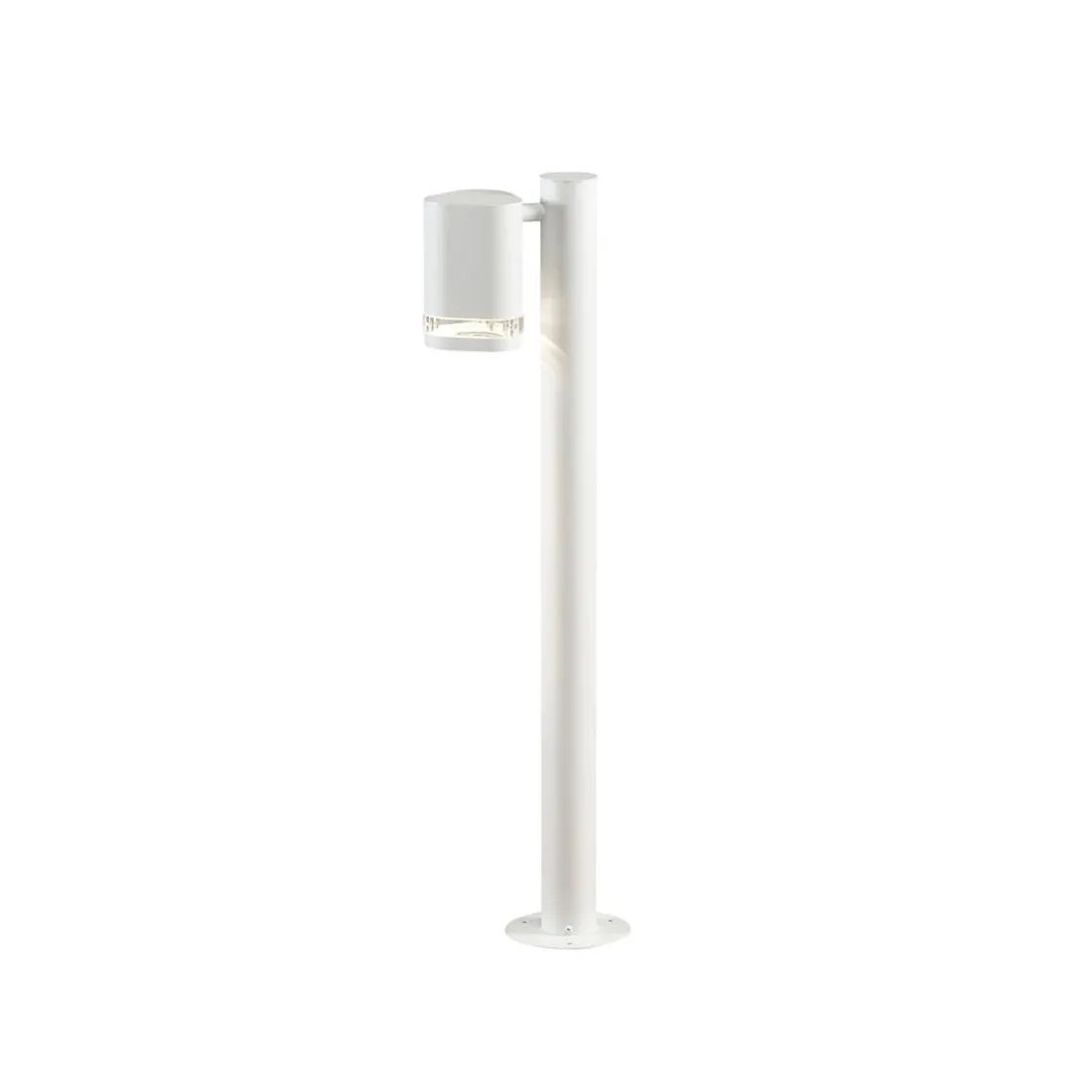 Flott pullert med nedlys i aluminium med dekorring i akrylglass. I bunnen har lampen klart glass.