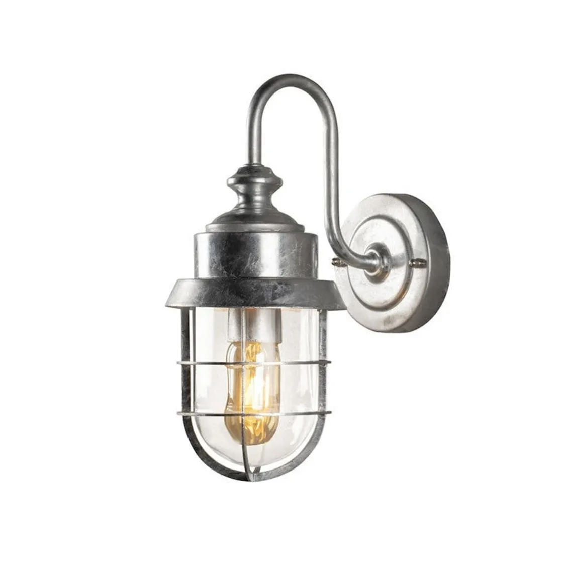 Vegglampe i gakvanisert utførelse. Klart glass.