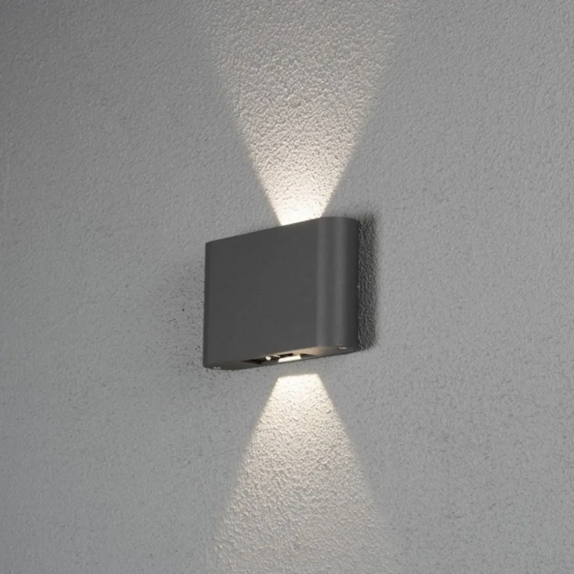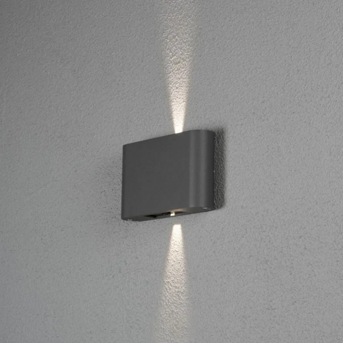 Slank og stilrent utelampe hvor du selv kan justere spredningsvinkelen på lyset både oppe og nede.