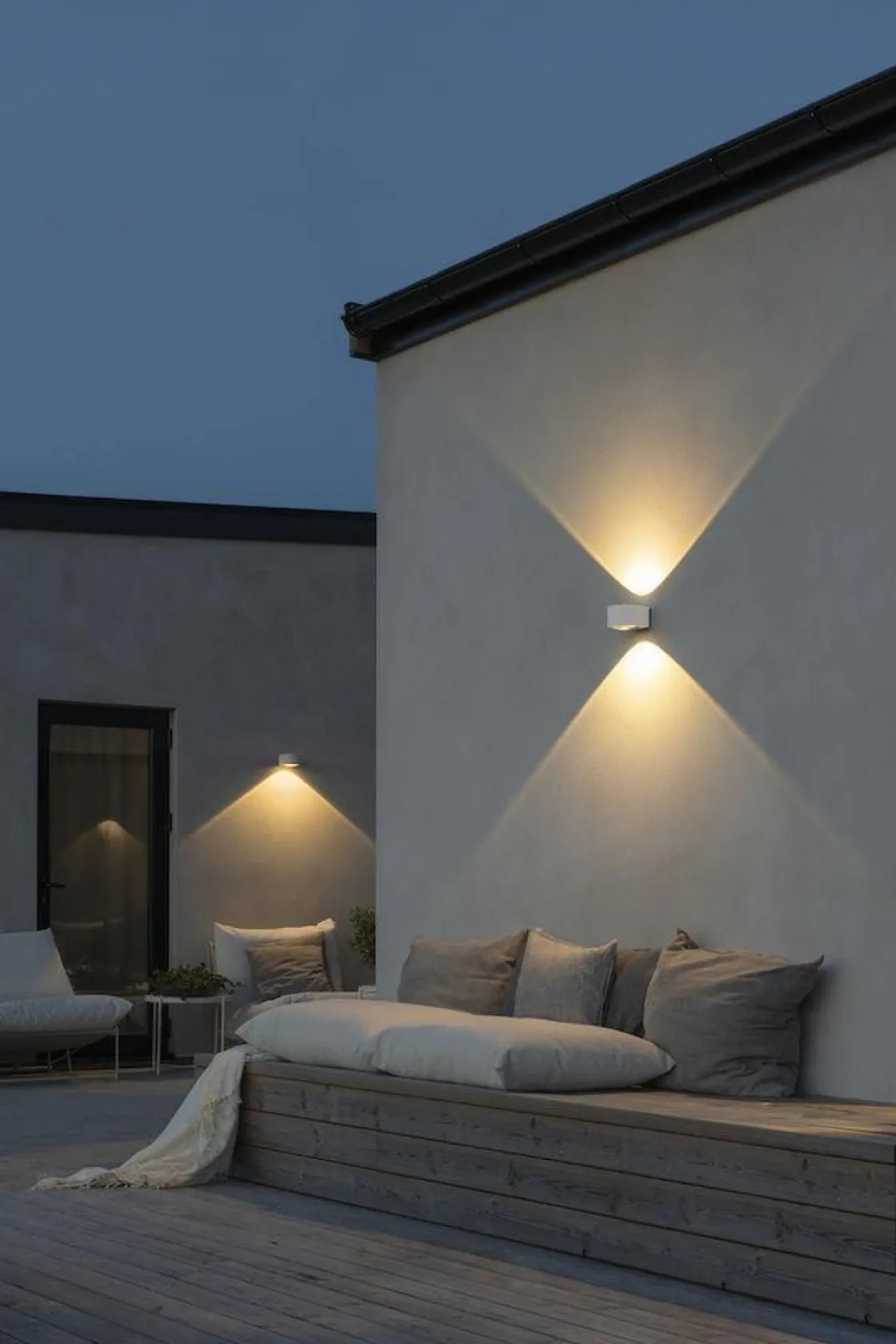 Gela er en moderne vegglampe som finnes i flere modeller, som lyser ned eller opp og ned.