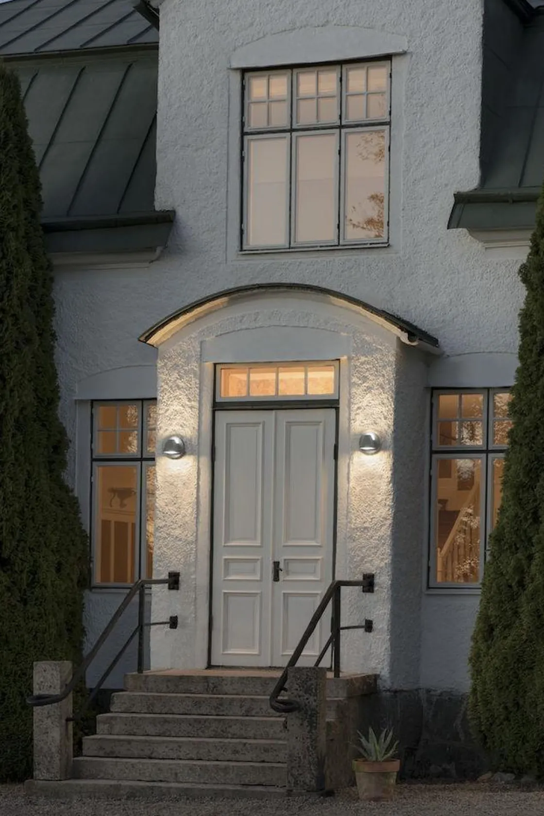 Hild er en stilfull vegglampe som både lyser opp og ned, modellen har integrert LED og kan dimmes med ekstern dimmer