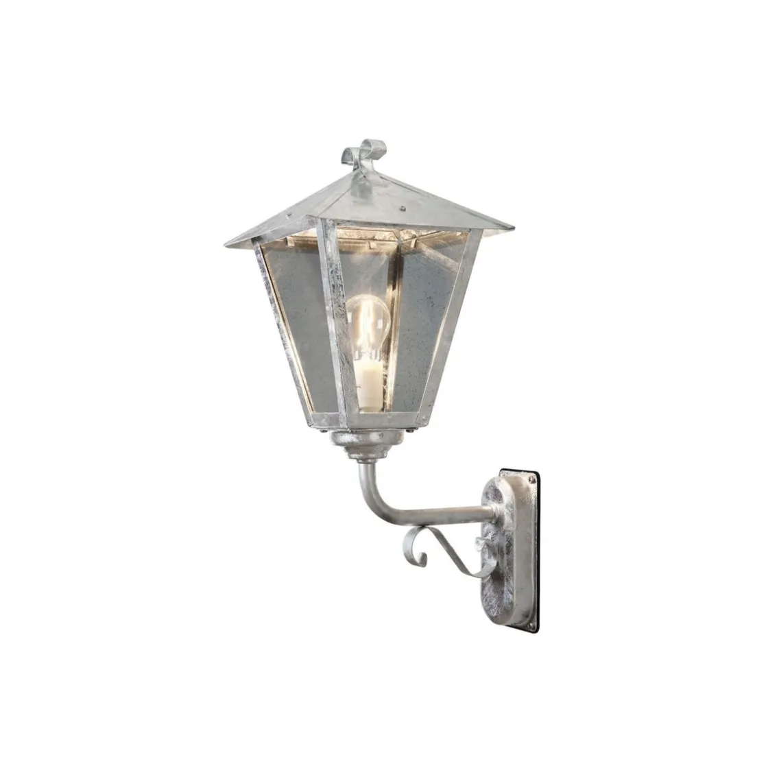 Benu er en vegglampe som er vendt opp. Utelampen er metallisk, stilren og er galvanisert. Beregnet for utendørs bruk.