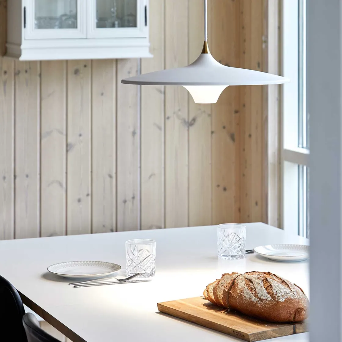 Moja 42 har et lett og nesten svevende design, noe som betyr at hengelampen blander seg godt inn i omgivelsene sine. Med effektiv, integrert LED-belysning klarer likevel hengelampen å skape godt lys – både direkte og indirekte. Den nedtonede designen og den funksjonelle belysningen kan derfor enkelt skape en vakker og behagelig atmosfære.