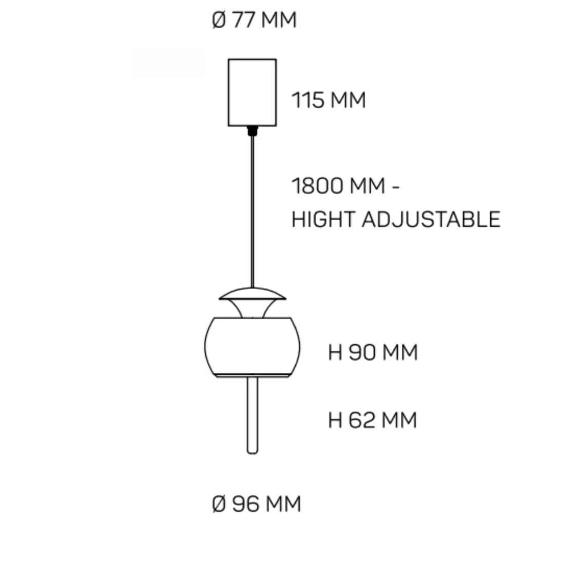 Parachute har et smart design som gjør det mulig å justere høyden på lampen ved å dra i den – opptil en maksimal lengde på 180 cm. Dette gjør det enkelt, greit og raskt å tilpasse lyset etter behov, og gjør den egnet for mange rom og møbler.