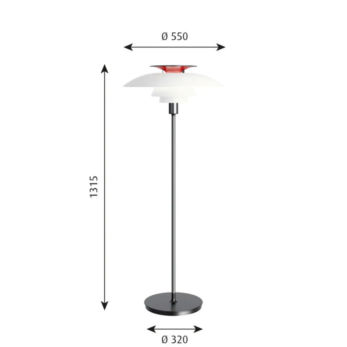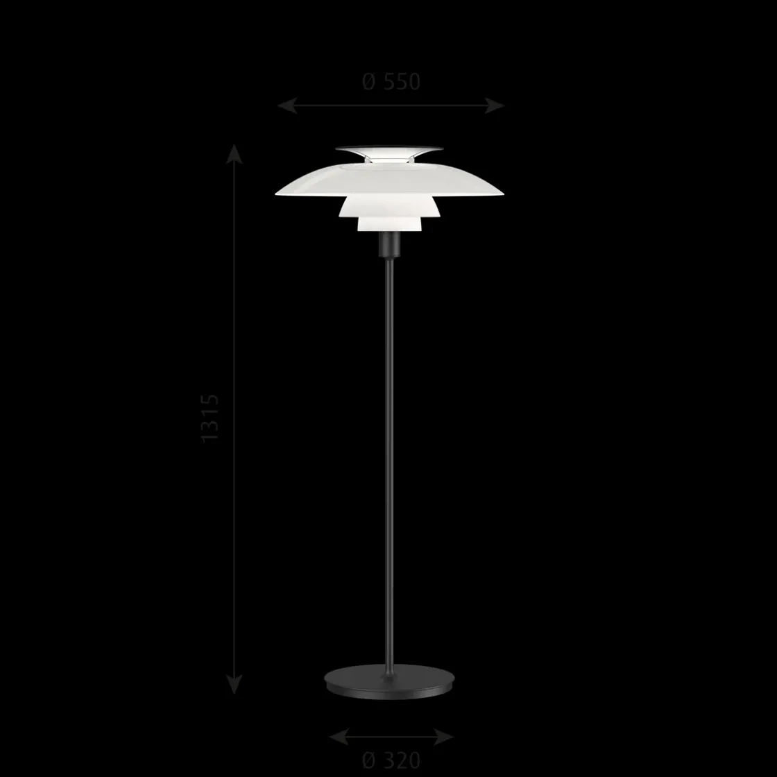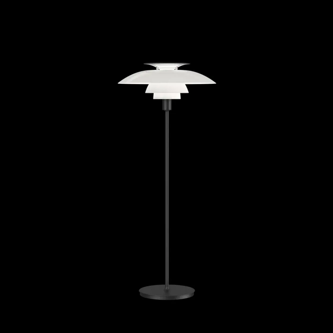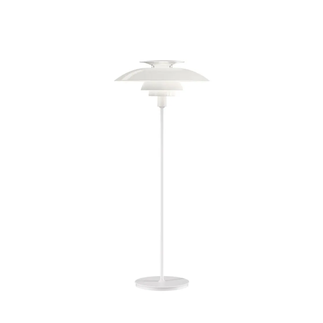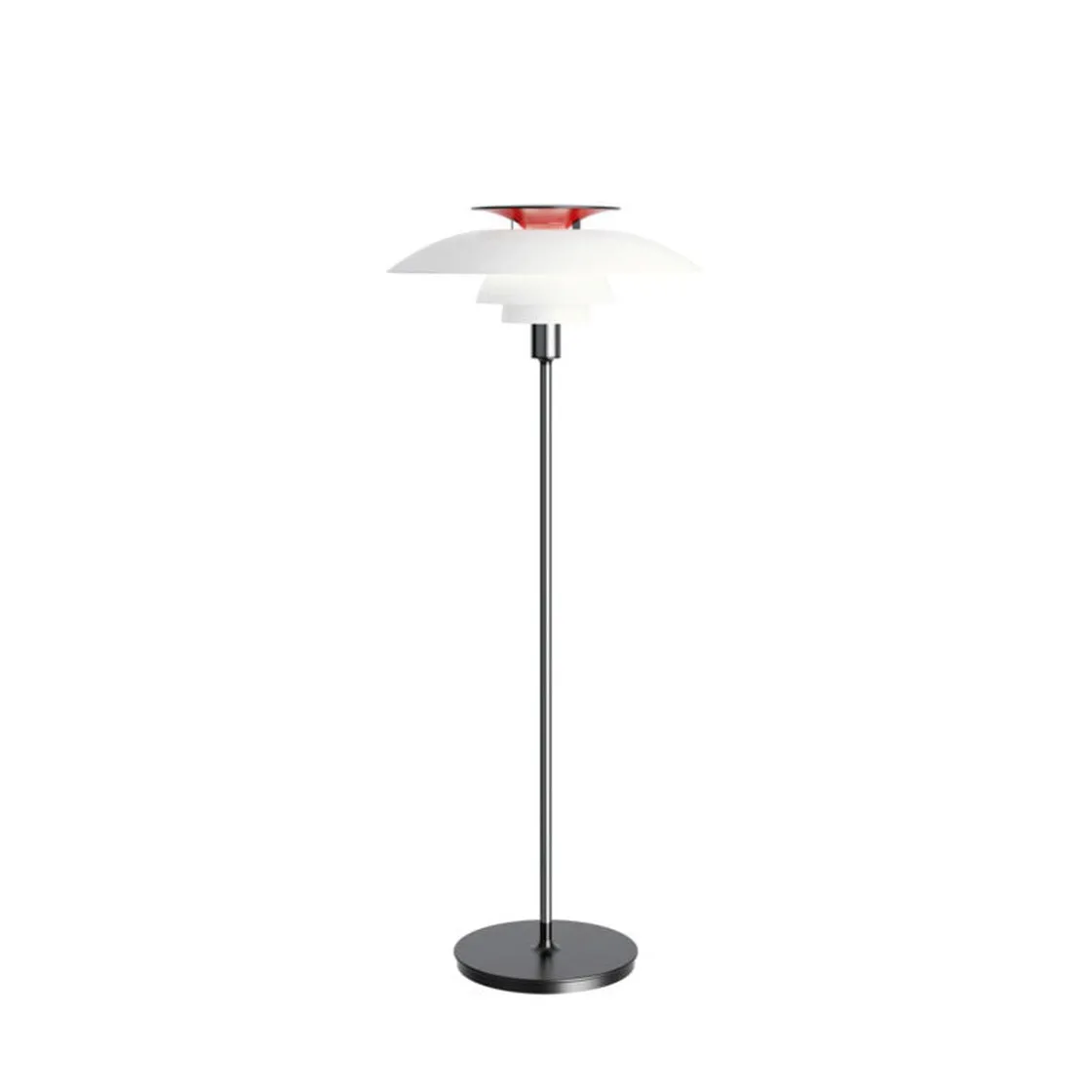 PH 80 er en gulvlampe fra den ikoniske lampekolleksjonen PH, designet av Poul Henningsen for Louis Poulsen. Lampen avgir et diffust, reflektert og symmetrisk lys. Mesteparten av lyset er rettet nedover, og skjermer i opal akryl gir en komfortabel belysning av rommet. Lampen har en hvit toppreflektor som reflekterer lyset og danner et elegant, renlinjet utseende. Valget av lyskilde bestemmer fargen på belysningen.