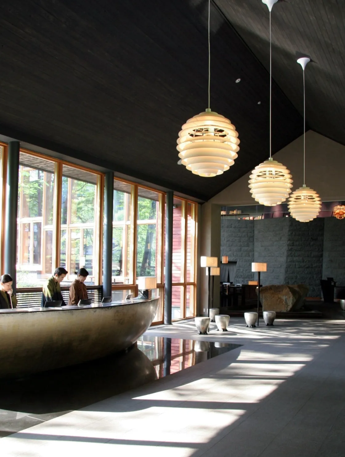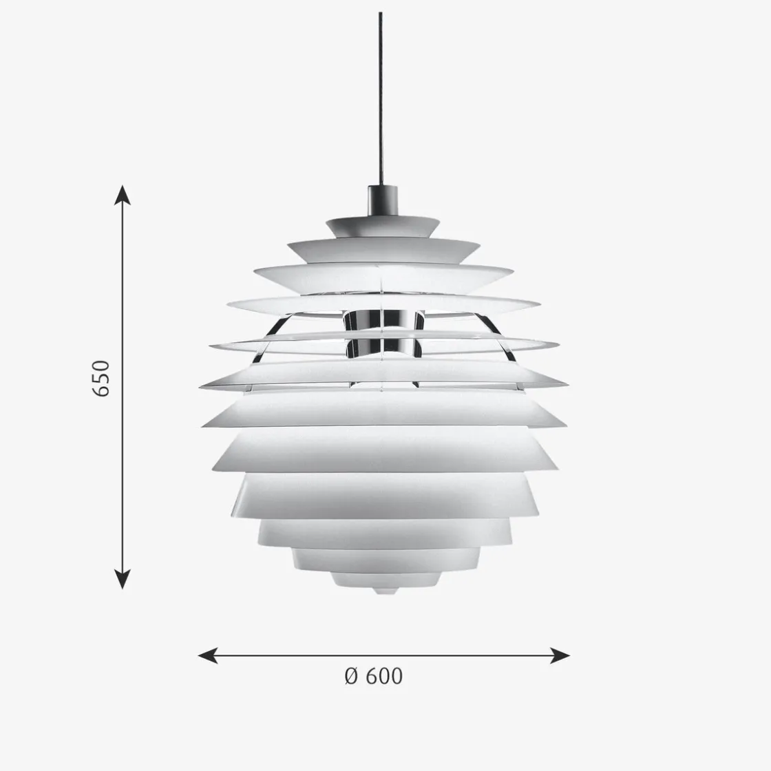 Armaturen utsender et 100 % blendfritt lys. Den geometriske, kuleformede designen er basert på prinsippet om å belyse alle overflatene i samme vinkel. Dette sikrer jevn belysning rundt armaturen og lyser opp både tak og vegger. Matte, malte undersider og blanke overflater gir en attraktiv refleksjon av det dempede lyset og skaper en jevn belysning rundt armaturen.