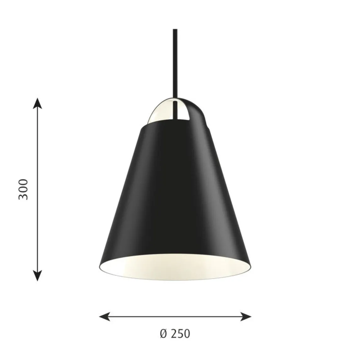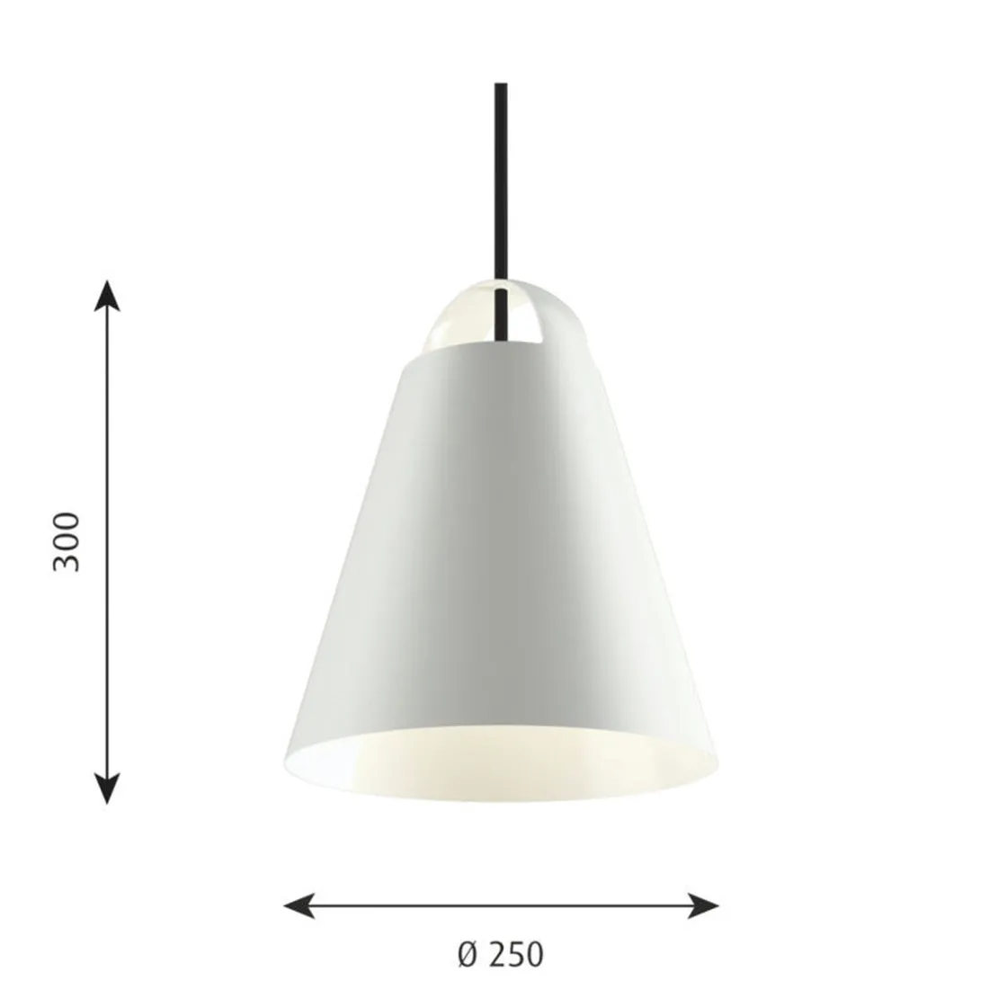 Taklampen Above gir et nedadrettet mykt og komfortabelt lys. Den kjegleformede fasongen og den matte, hvitlakkerte innsiden bidrar til spredning av lyset. Åpningen i toppen av armaturen gir en dekorativ egenopplysning av buen øverst og gjør at armaturen visuelt beholder hele sin form både i tent og slukket tilstand.