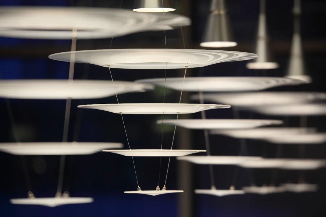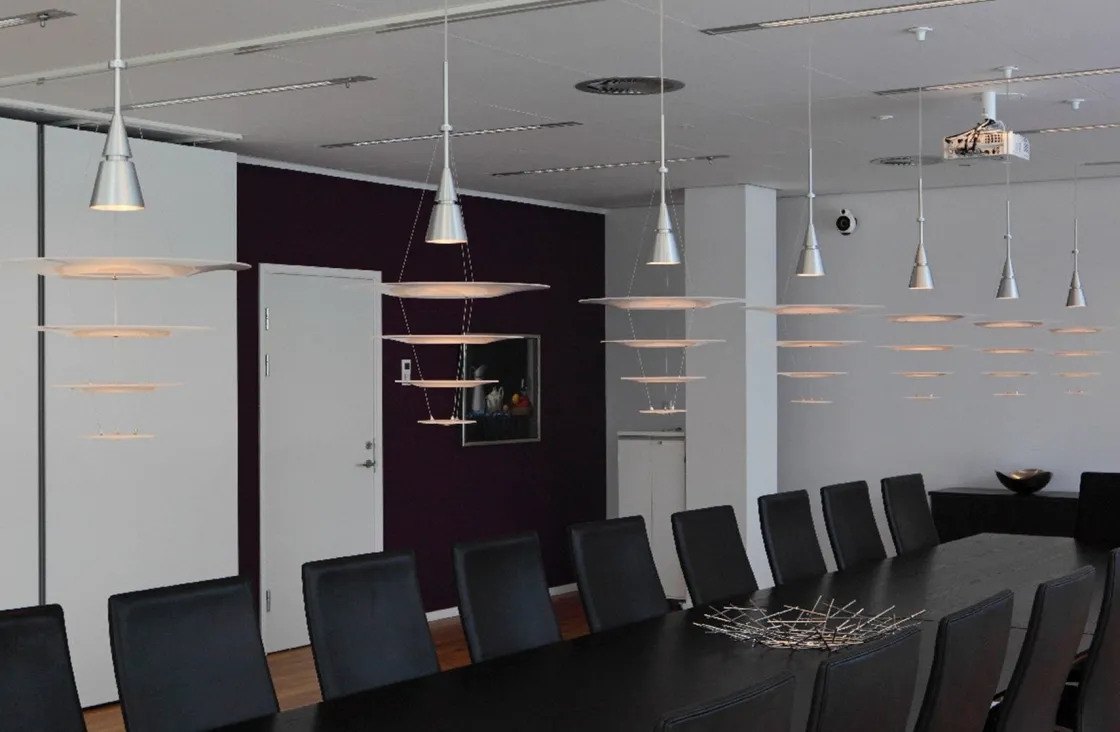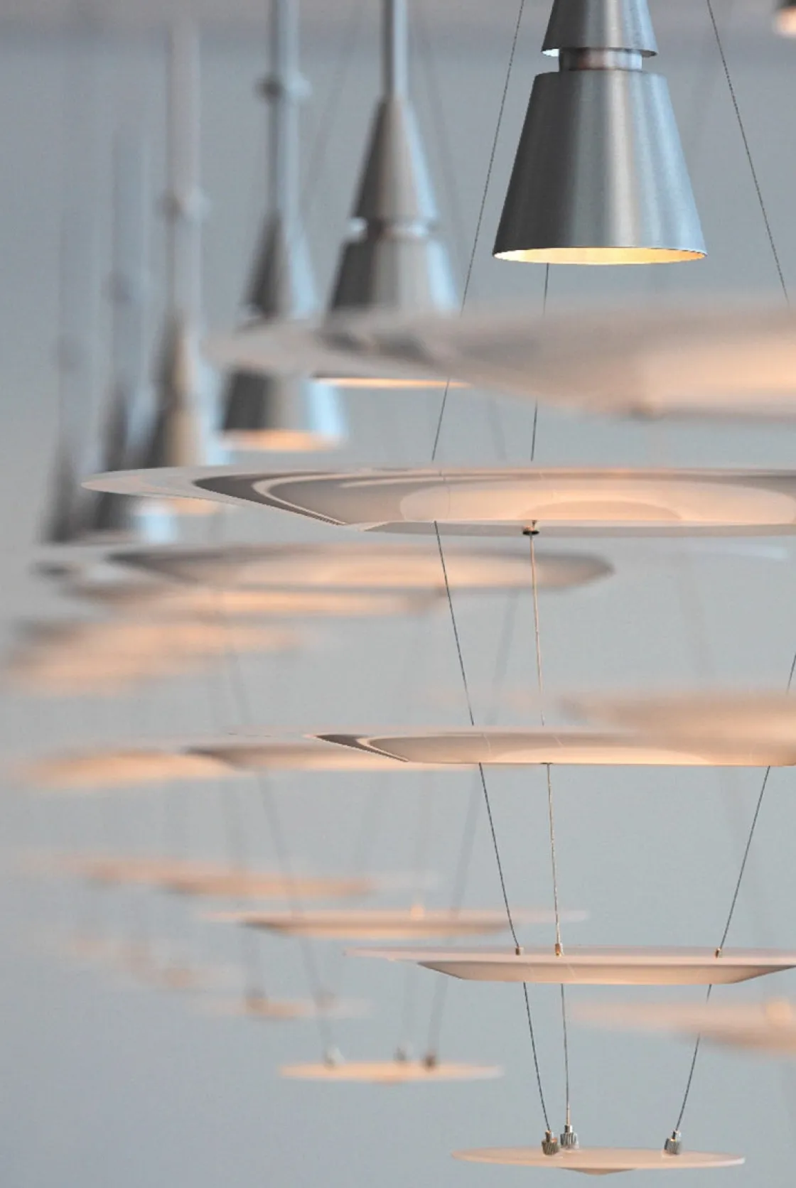 Taklampen Enigma sender ut et blendefritt, mykt og komfortabelt nedadrettet lys. Skjermens design sikrer jevn belysning i rommet. Den matte overflaten øverst sprer lyset, mens den blanke flaten på undersiden sikrer en optimal refleksjon.