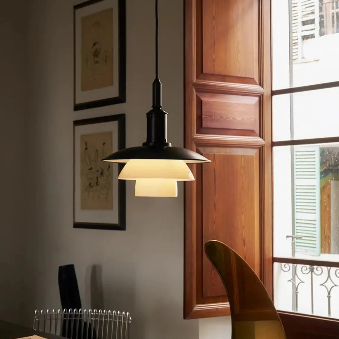 Taklampen PH 3/3 Aged Brass Opal vil løfte ethvert rom, inkludert små rom og rom med høye tak, enten det er en gang, kjøkken, soverom eller stue.