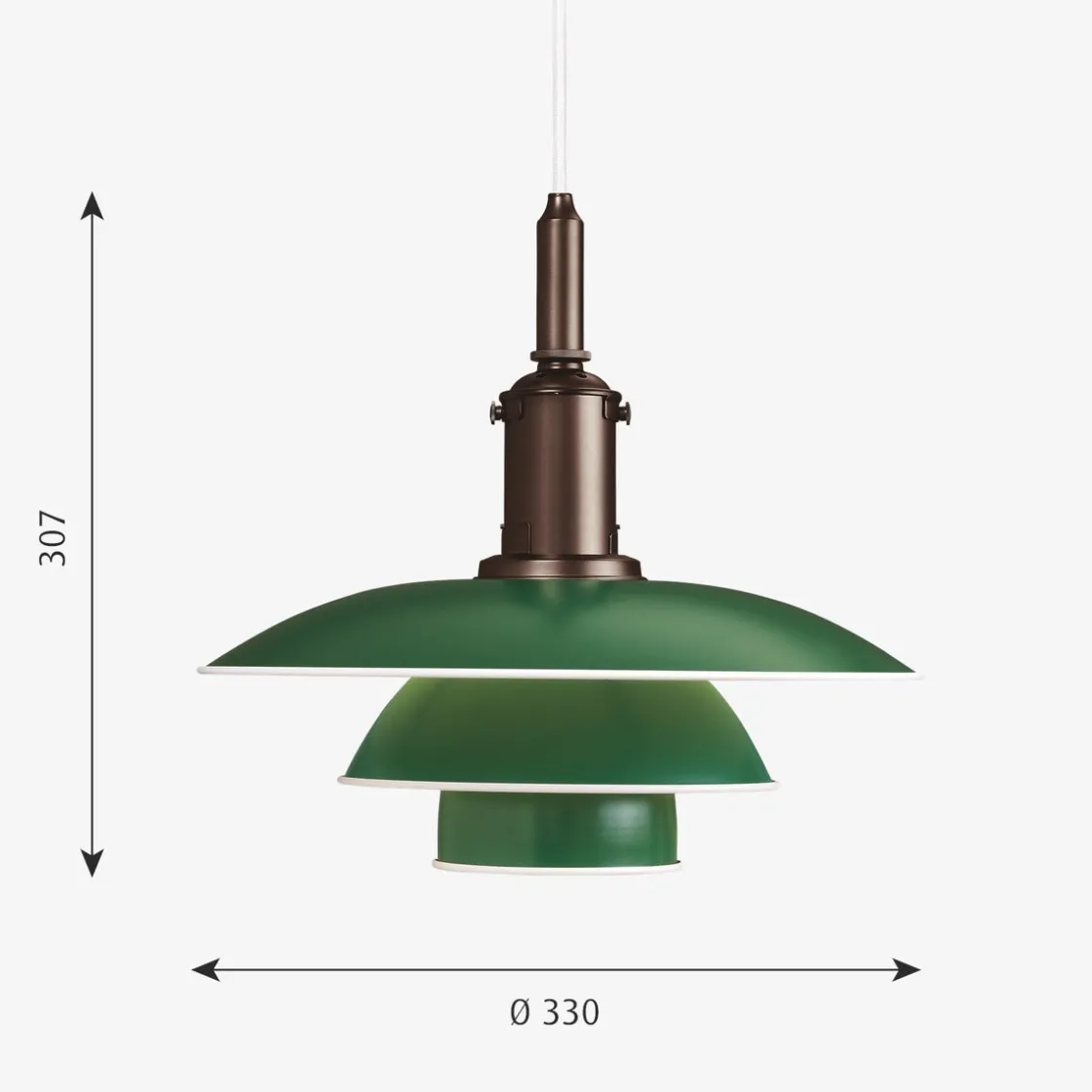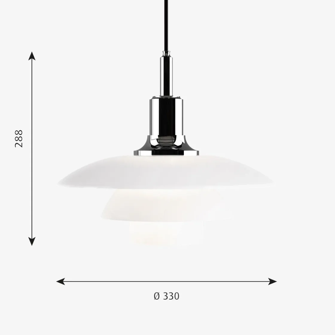 - Materiale: Skjermer: Munnblåst, hvitt opalt glass. Oppheng: metallisert messing, ekstrudert aluminium.