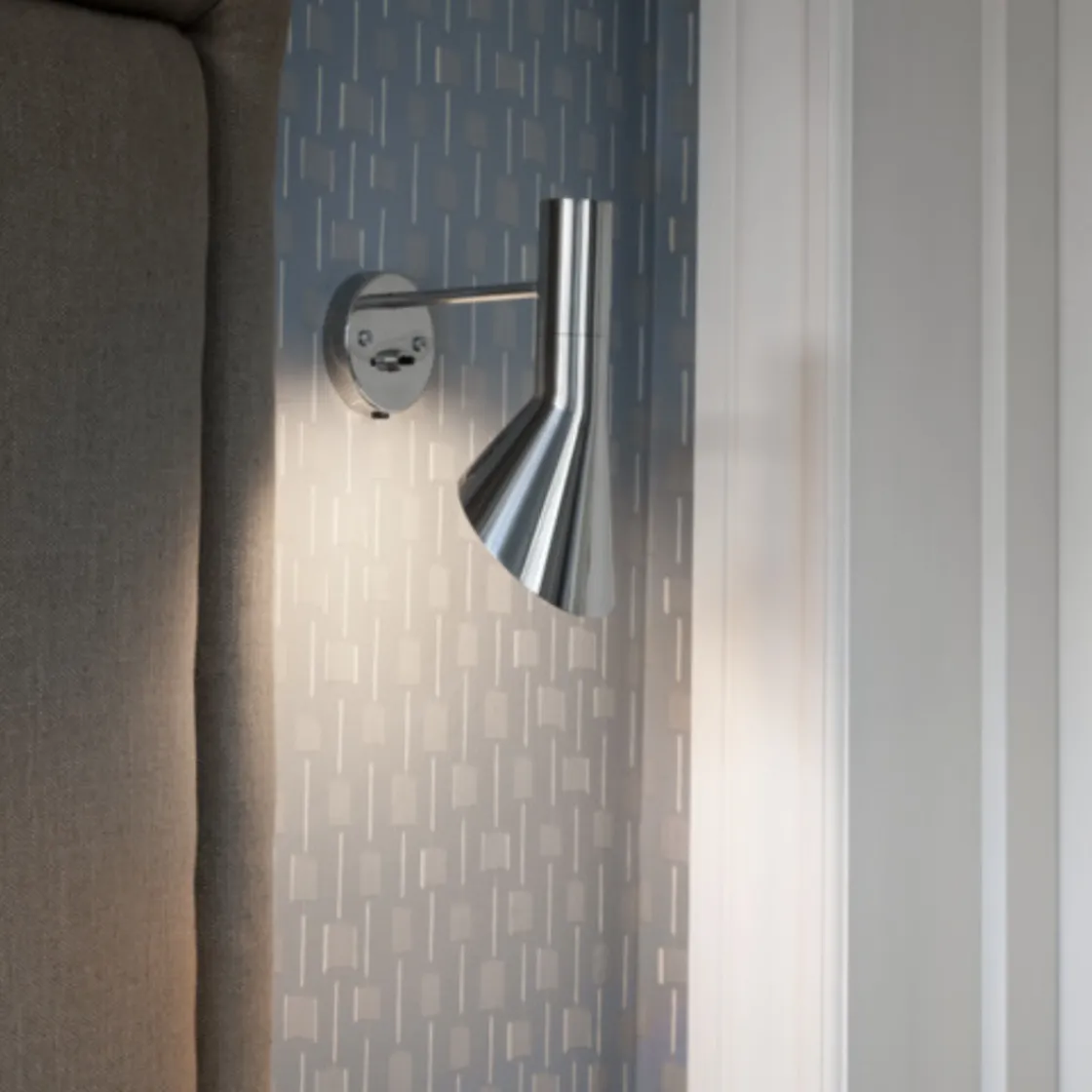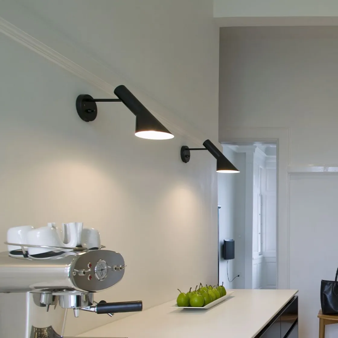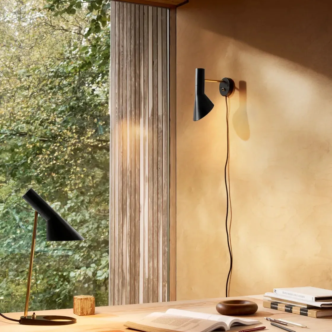 Arne Jacobsen designet AJ-lampen for SAS Royal Hotel i København (Radisson Collection) i 1957. I dag er AJ-serien ansett som den designen som den danske arkitekten er mest kjent for over hele verden. Vegglampen AJ fra Louis Poulsen inngår i Arne Jacobsens ikoniske lampekolleksjon AJ. Kolleksjonen inkluderer også en bordlampe og en gulvlampe i samme stilrene formspråk.