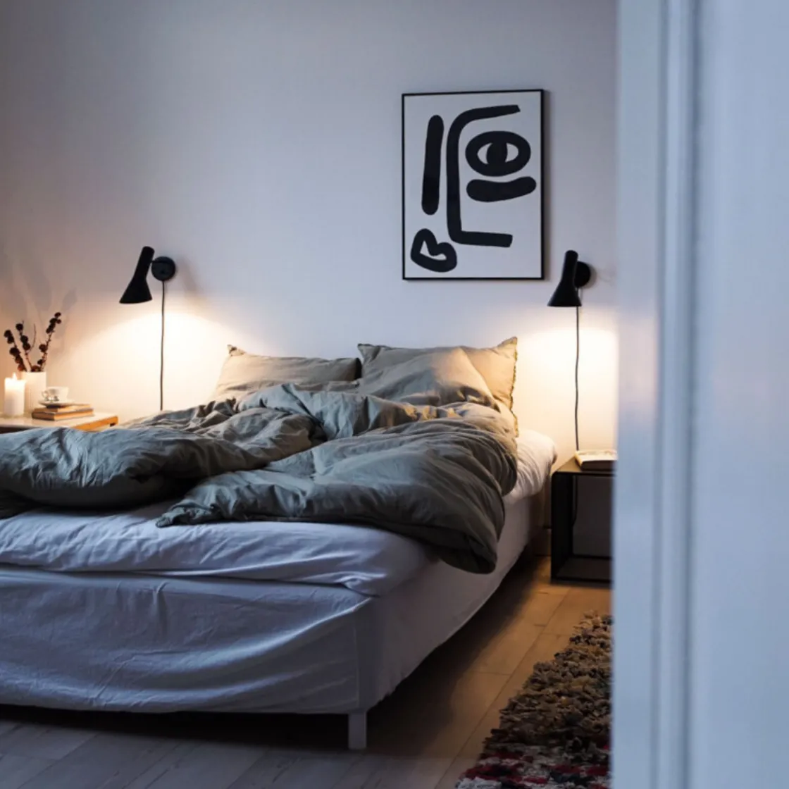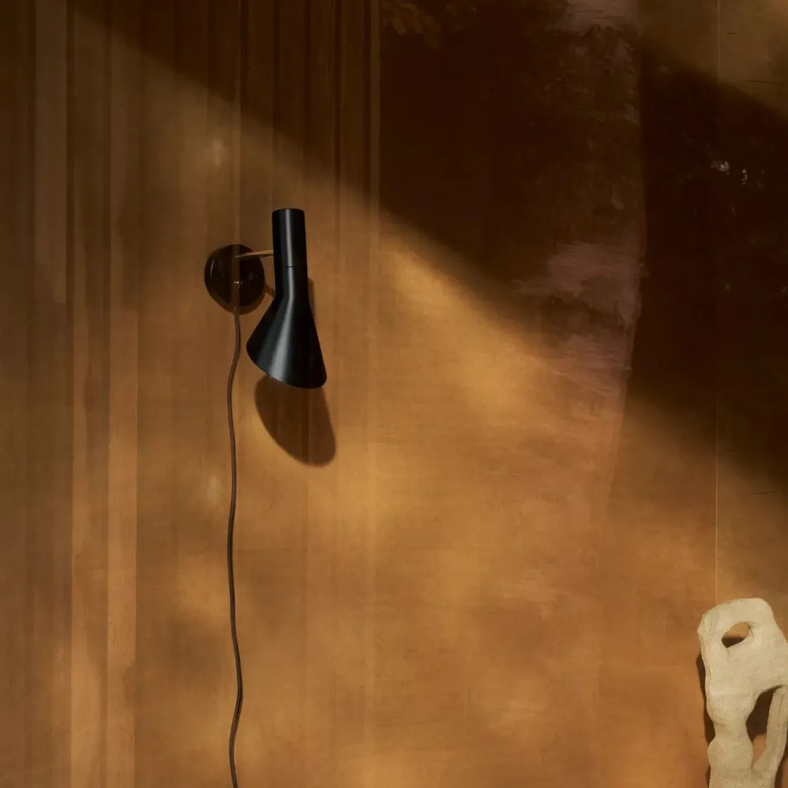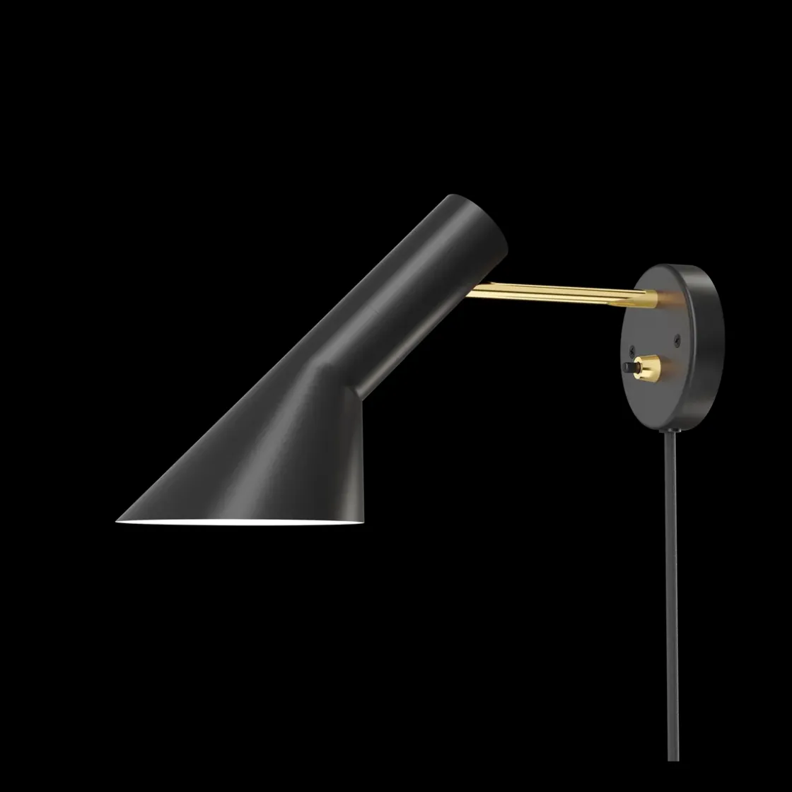 AJ vegglampen sender ut et direkte nedadrettet lys. Vinkelen og rotasjonsretningen på skjermen kan justeres for å optimalisere lysfordelingen. Skjermen er malt hvit på innsiden for å gi et mykt og komfortabelt lys. Denne modellen leveres med ledning og bryter på basen.