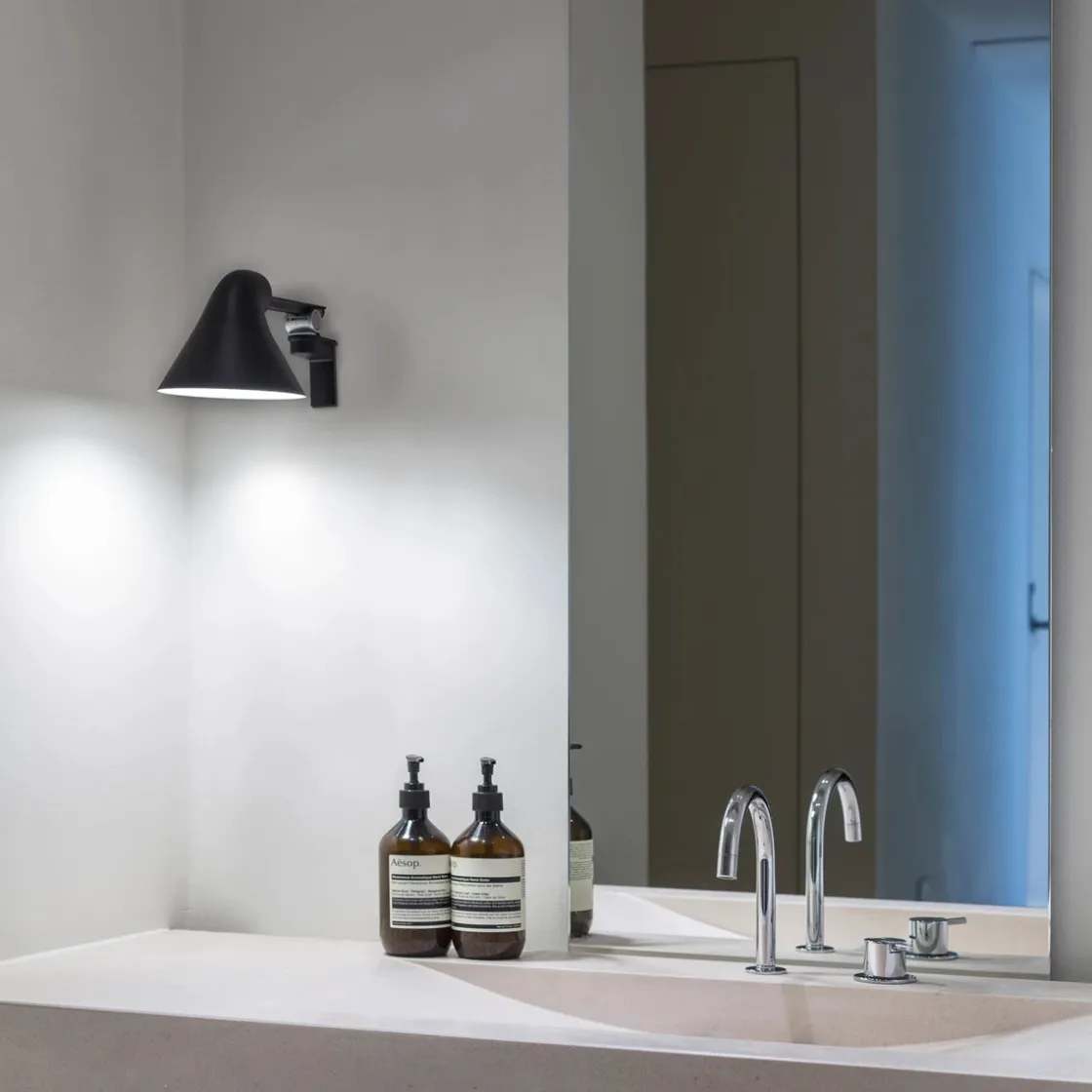 Louis Poulsen NJP vegglampe gir direkte, blendefritt, horisontalt lys og reflekterer samtidig noe av lyset gjennom baksiden av hodet slik at øvre del av armen lyses opp. Armaturhodets ergonomiske design former lyset og sørger for en optimal lysretning. Et enkelt mekanisk system gir stor bevegelsesfrihet, slik at lyset alltid kan stilles inn på det perfekte stedet. Skjermen er malt hvit på innsiden og reflekterer behagelig, diffust lys.