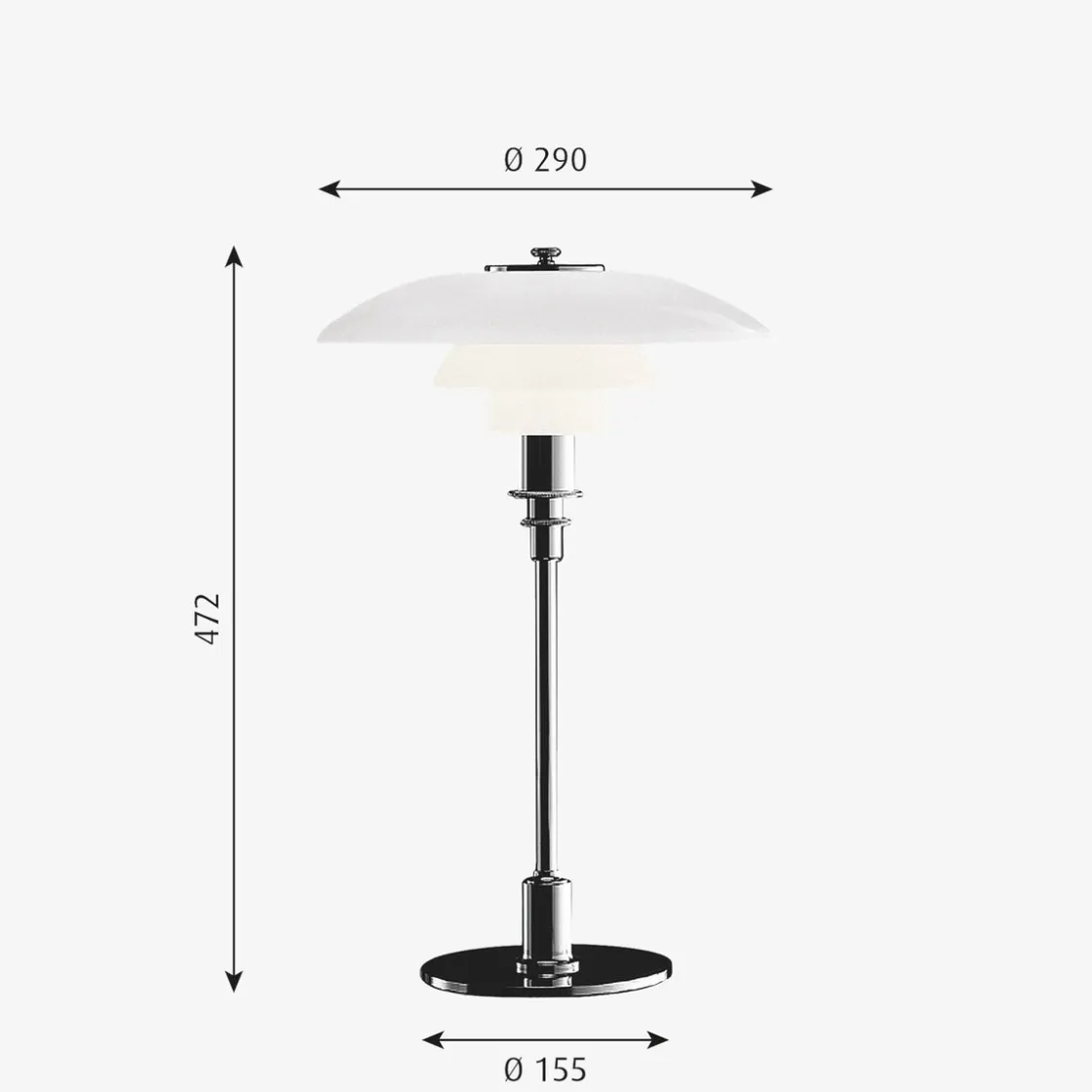 Armaturen gir en myk lysfordeling. PH 3/2 er designet etter prinsippet om et reflekterende flerskjermssystem som gir en harmonisk og blendfri belysning. Designen på skjermen er basert på en logaritmisk spiral, der midten av lyskilden er plassert i spiralens brennpunkt.