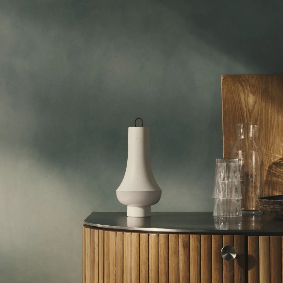 Denne lille bærbare lampen, som har fått navnet sitt fra det japanske ordet for lys, er et flott eksempel på design som former lys. Med ordene til designeren, Oki Sato, «Tomoshi lar lyset plasseres fritt, henges opp og bæres hvor man vil, fremkaller en følelse av nostalgi og velkjenthet, samtidig som det bringer noe nytt til hverdagen.»