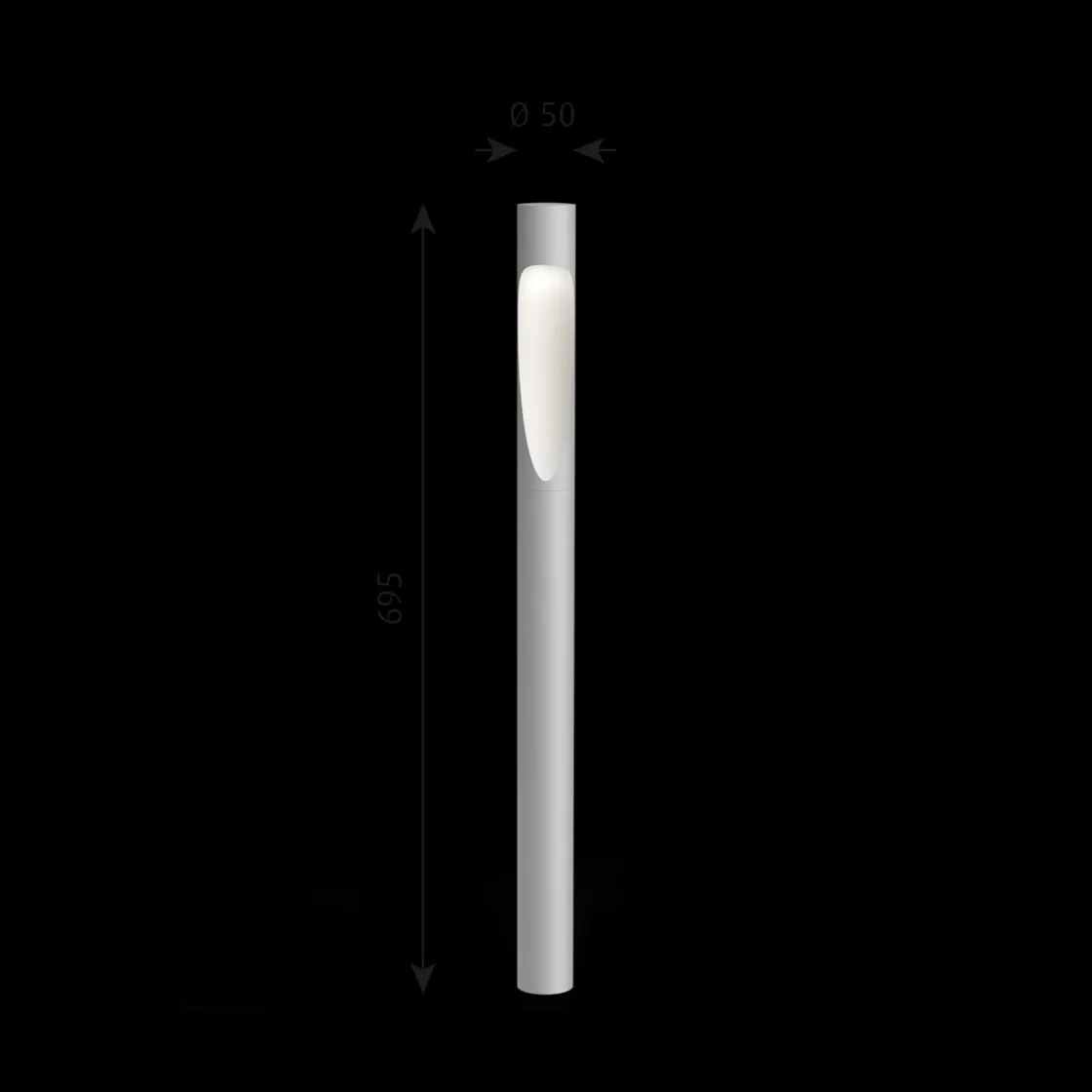Armaturen avgir et bredt, nedadrettet blendefritt lys. Lyskilden hviler på toppen inne i den asymmetriske utskjæringen på siden av pullerten, hvor gradienten fungerer som en reflektor som mykner lyset og danner en behagelig organisk form på bakken nedenfor.