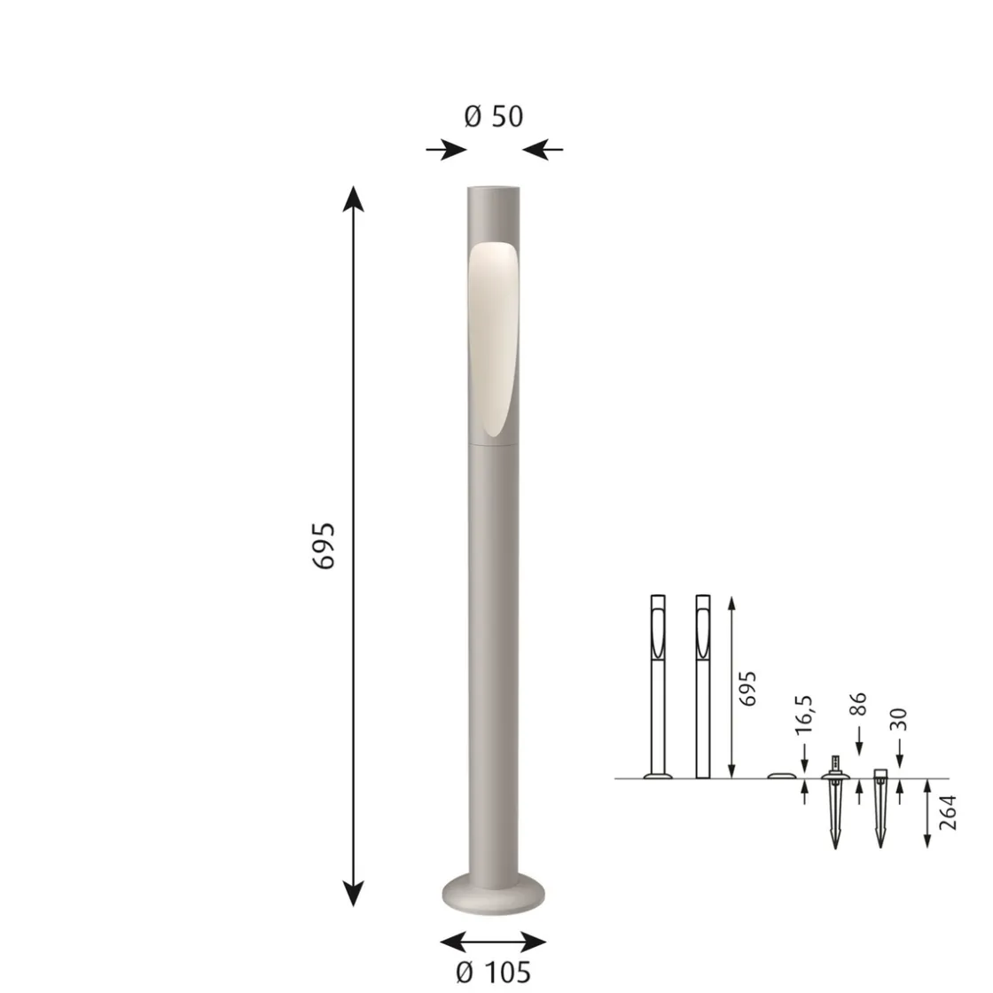 - Materiale: Topp: Støpt aluminium. Reflektordel: Støpt aluminium. Mast: Ekstrudert aluminium. Fotplate: Støpt aluminium.